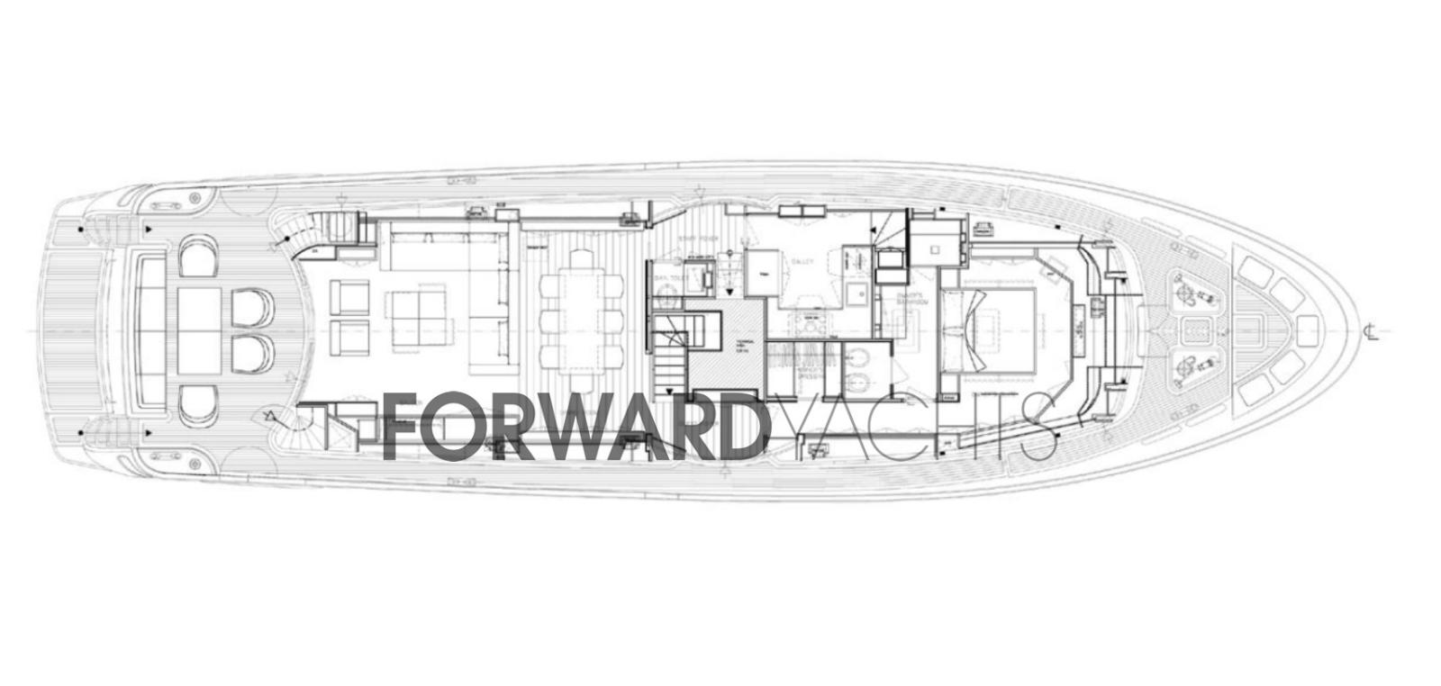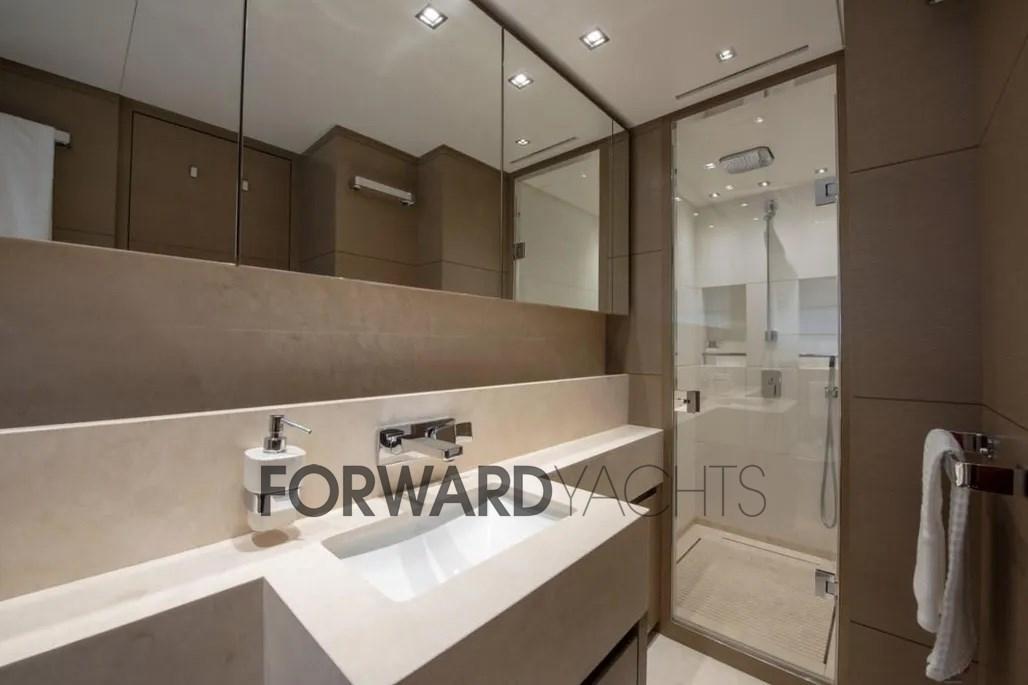 On the main deck is the full-beam owner's suite, elegant and reserved, with a large private bathroom.