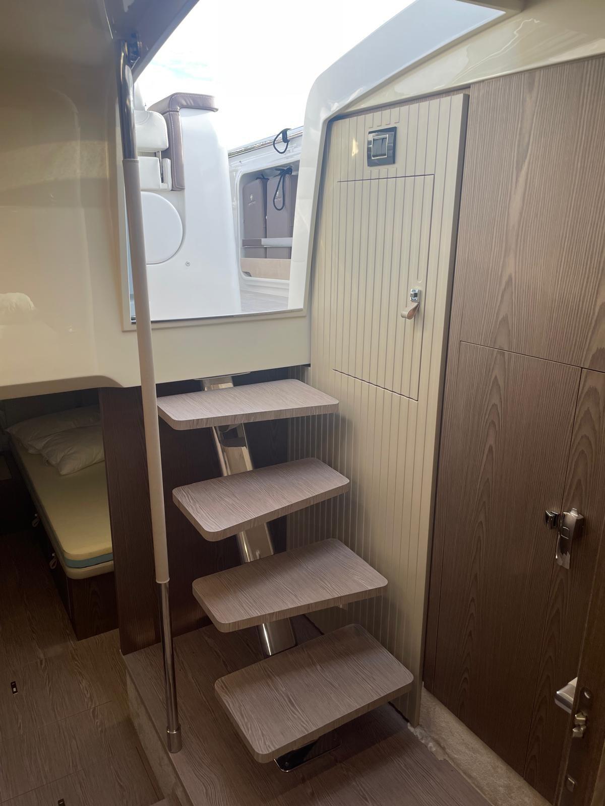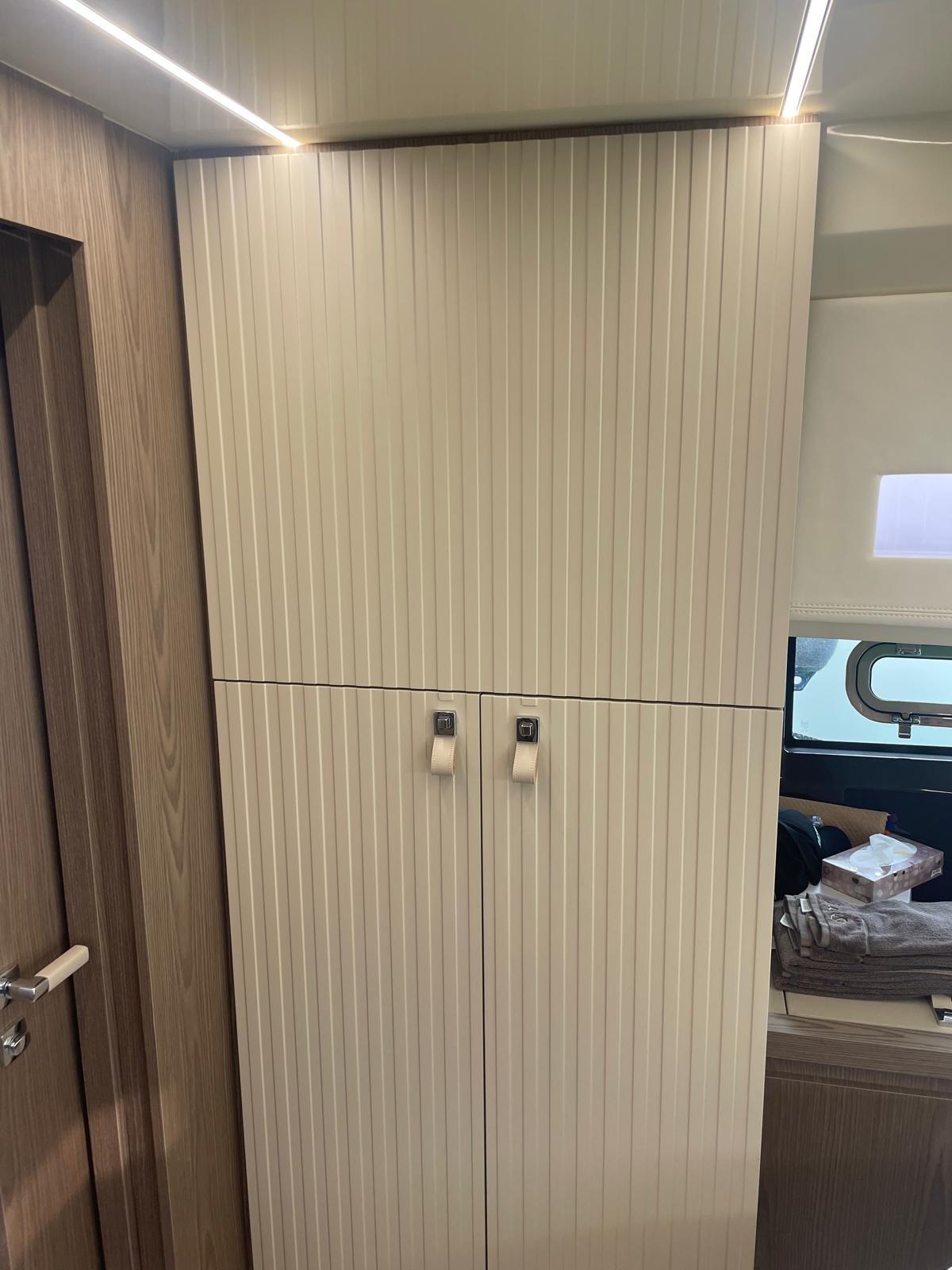 Engine Alarm, Bilge Alarm, Water pressure pump, Teak Side Decks, Shore power cable, Deck Shower, Electric Flaps (Interceptor), Tender Garage, Hard top (Carbonio), Fire Extinguishing System, Flaps Indicators, Washbasin in the cockpit, Courtesy Lights, Underwater lights, Fenders, Gangway (idraulica a sfilo), Platform (idraulica affondabile), Automatic Bilge Pump, Teak Cockpit, Shorepower connector, Electric Windlass, swimming ladder, cockpit table, Horn.
