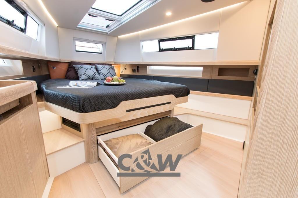 Rudder angle indicator, DSC vhf (Raymarine), Joystick, Autopilot (Raymarine Evolution), Plotter with GPS antenna (Raymarine GS125), 2 Co-pilot seat, Sonar, Engine Measuring Instruments.