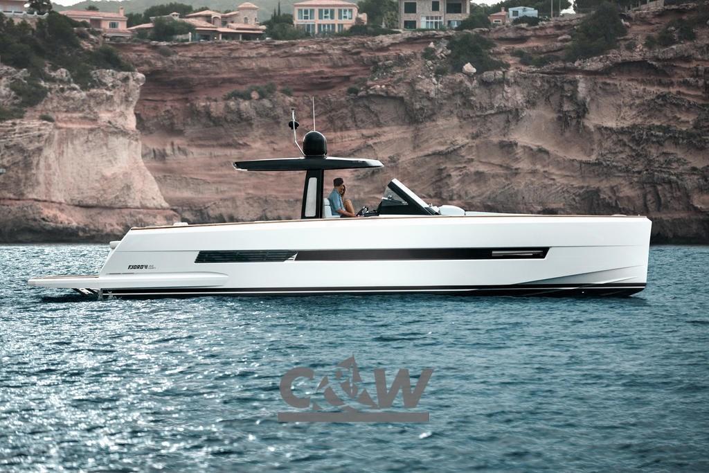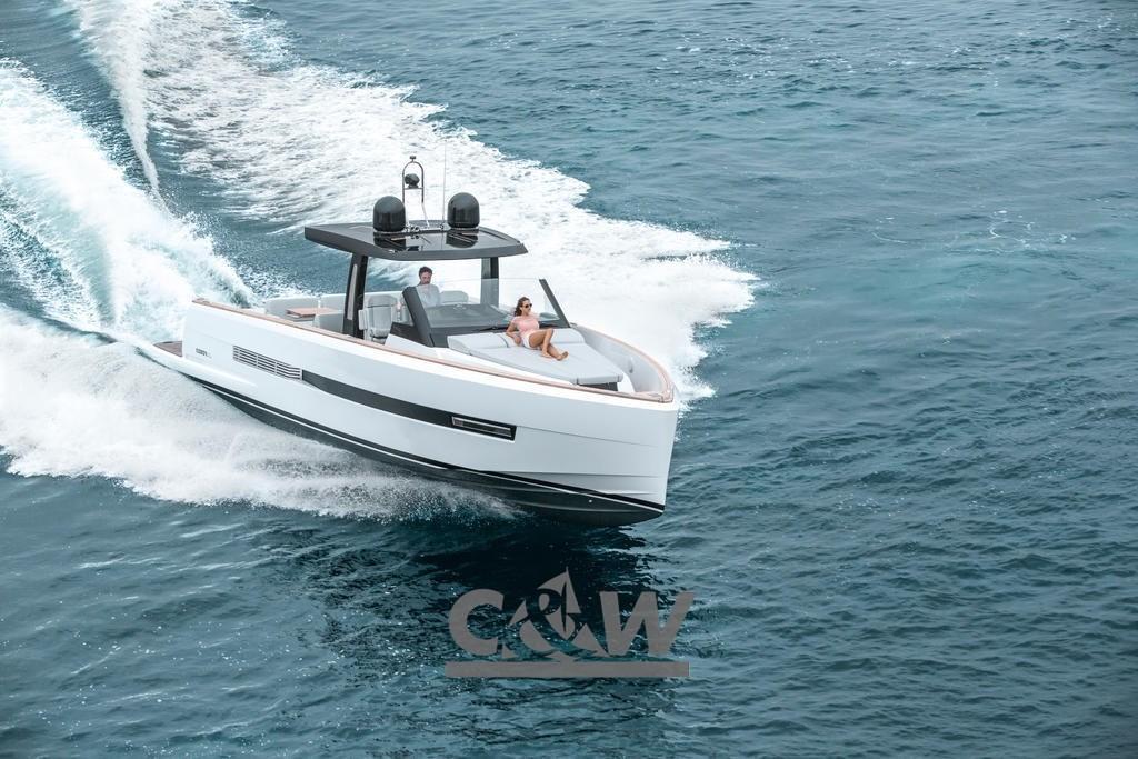 Engine Alarm, Bilge Alarm, Alternator, Anchor (Delta 10kg con 50 m di catena), Water pressure pump, Auto-Trim (Volvo Interceptor), 6 Batteries (2x90Ah + 4x260Ah AGM), 8 Folding cleats, Teak Side Decks, Battery charger (Victron Energy 50A), Shore power cable, Deck Shower (calda/fredda), Directional Spotlight (su T-Top), Electric Flaps (Volvo Penta BTS (boat trim system)), Tender Garage (con apertura idraulica), Flaps Indicators, Courtesy Lights, 6 Fenders, Platform, 4 Electric Bilge Pump, Manual Bilge Pump, Entry door, Teak Cockpit, Shorepower connector, Electric Windlass (Genius), swimming ladder, 2 cockpit table (abbassabili elettricamente), Horn, T-Top.