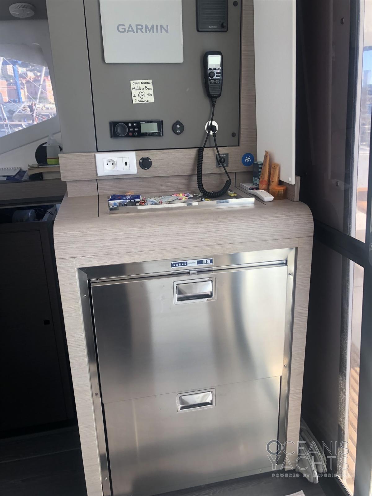 Deck Shower, Tender Crane, Courtesy Lights, Solar panels, Fenders, Gangway, Automatic Bilge Pump, Manual Bilge Pump, Entry door, Shorepower connector, Electric Windlass, swimming ladder, Outboard Engine Support Bracket, cockpit table, Winch.