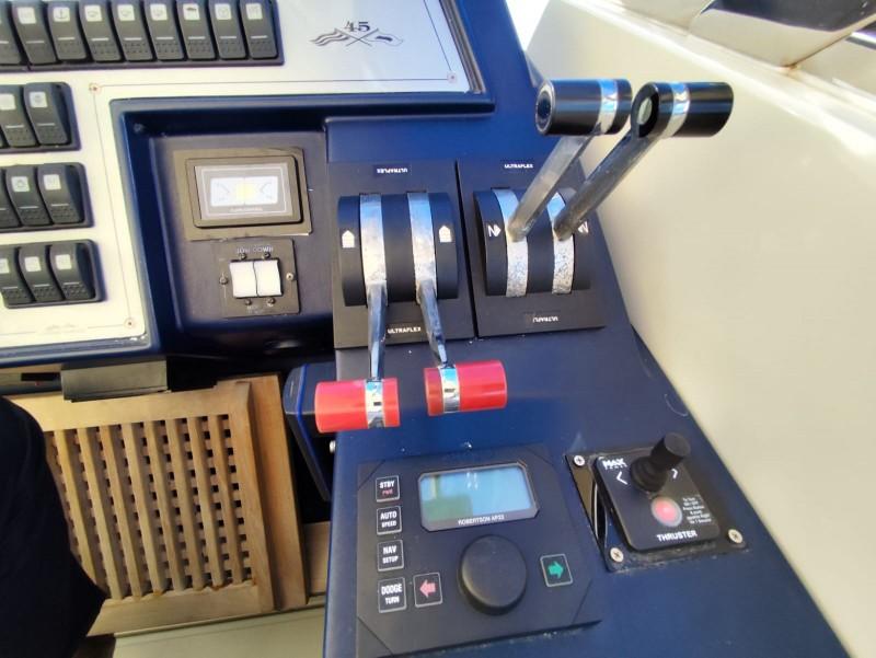 The SARNICO 45 MAXIM is well equipped with a bow thruster, individual air conditioning for each cabin, generator, Besenzoni hydraulic gangway, fore and aft sunpads, two shower booths, a fully equipped galley (with dual interior/exterior refrigerators, induction cooktop, and ice maker), TV in the saloon, and Hi-Fi system. Always well maintained, the 2025 refit included replacement of the bow thruster, trim tabs with indicators, and batteries. In 2024, new tachometers were installed, and in 2023, the hull was fully sanded back and all seacocks replaced. Ready to cruise - Check the full brochure, the video and the sea trial on our Web site MEDIA SHIP