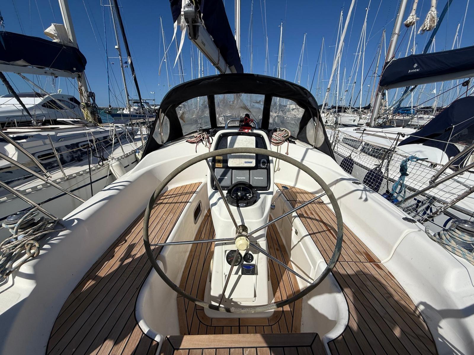 Equipped with: complete Raymarine electronics, autopilot, Geonav 6 GPS, electric toilet, bimini and sprayhood.