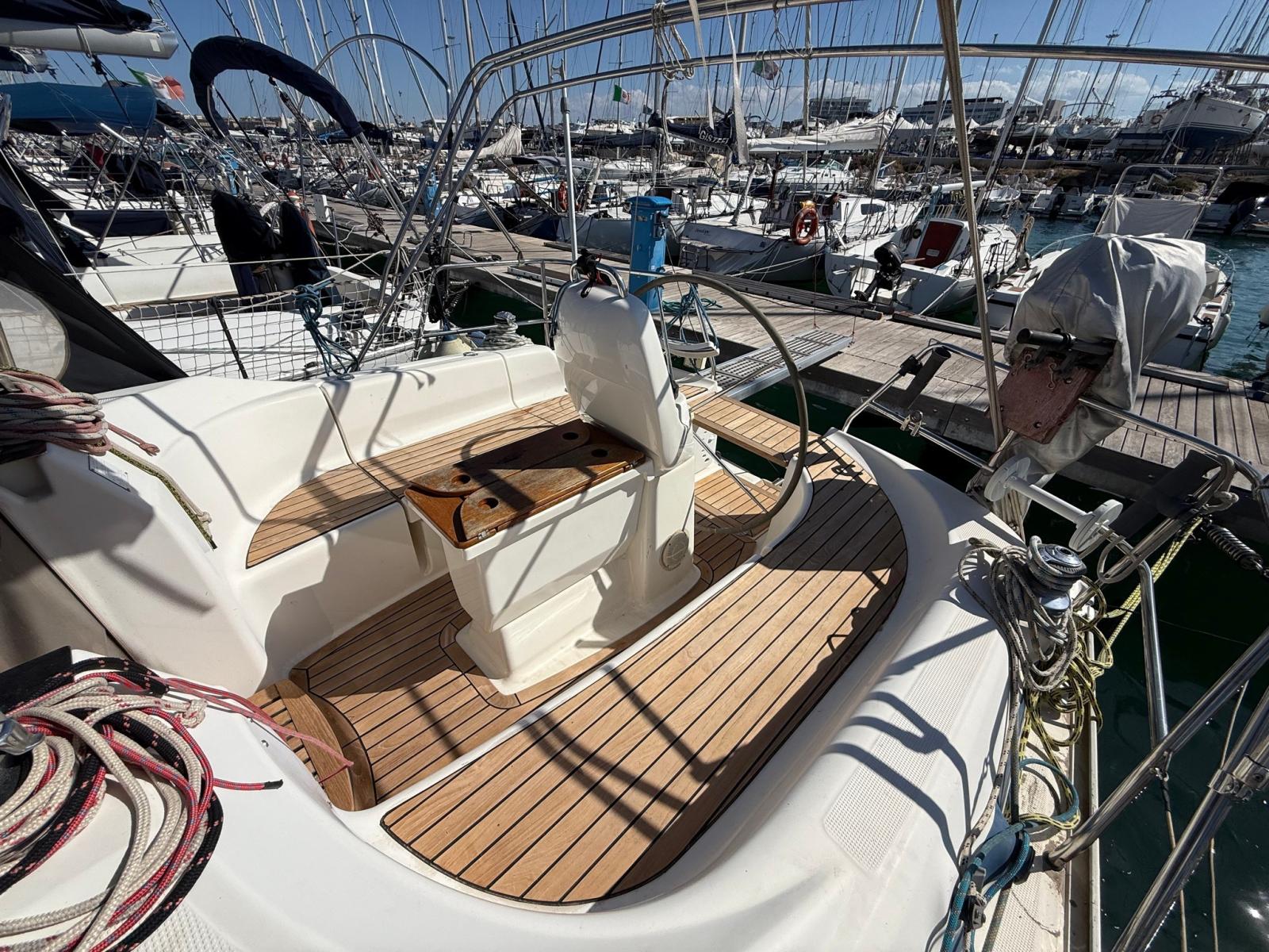 Alternator, Water pressure pump, Deck Shower, Fenders, Gangway, Manual Bilge Pump, Entry door, Teak Cockpit, Shorepower connector, Electric Windlass, Strand rigging, swimming ladder, cockpit table, 4 Winch.