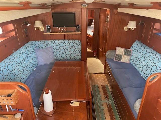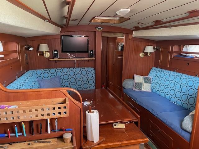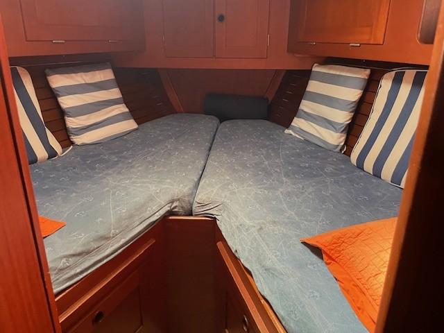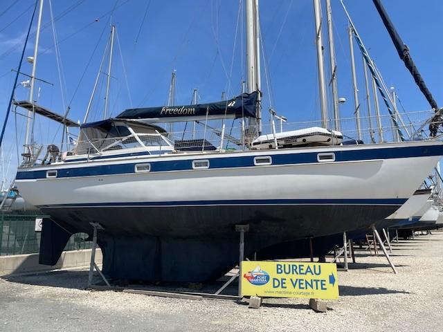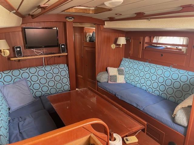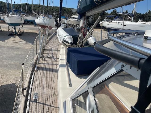The HR 38 is a sturdy, high-sea sailing boat, appreciated for its maritime qualities and its elegant and spacious interiors. It's a sailboat capable of providing stability and safety in difficult weather conditions. Its welcoming interior is crafted from high-quality mahogany & teak, offering warmth and comfort. It boasts a spacious and deep cockpit, easy access to the bow, two double cabins, and a saloon convertible into sleeping space, with a total capacity for 8 people. Maintained by its current owners since 2013, with a teak deck redone in 2015, the boat is winterized each year for 10 months. Viewings are available by appointment at PORT MARITIMA - MARTIGUES.