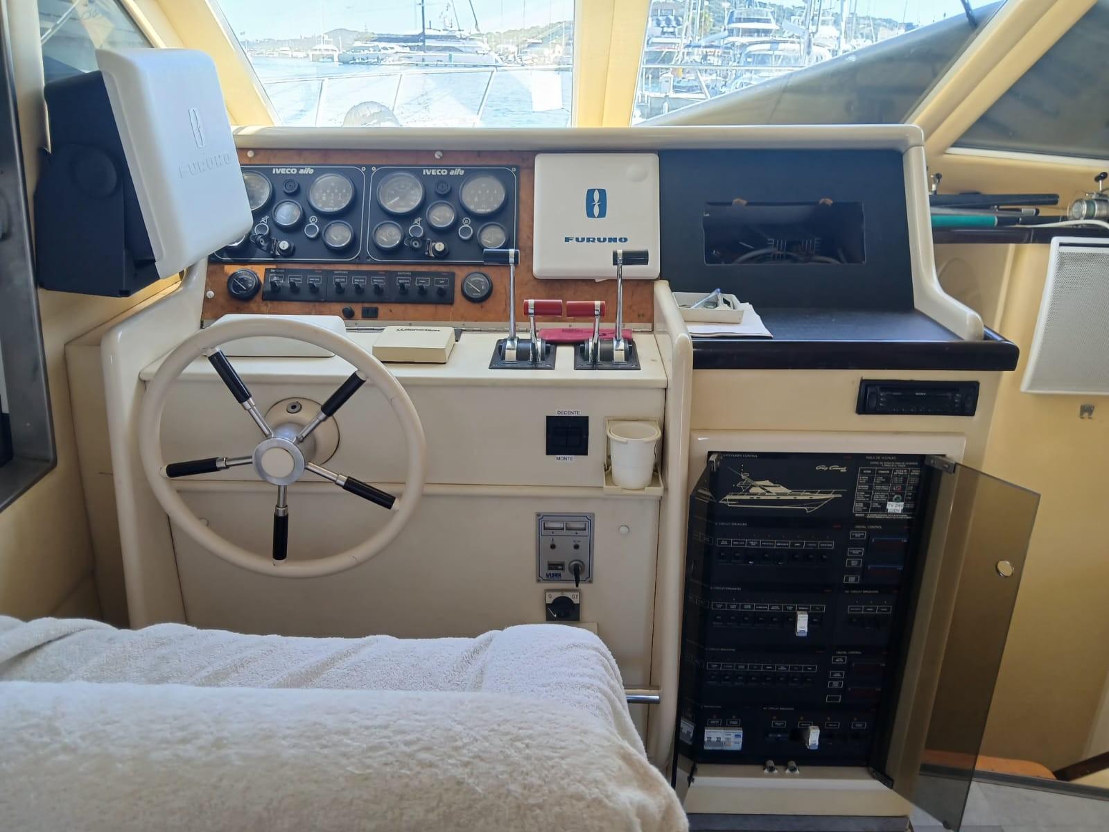 GUY COUACH 1200 is a sturdy and very sea-worthy model, ideal for sailing in the Mediterranean, combining indoor comfort, good recent motorization, spacious fly bridge, numerous storage spaces for cruises and sea outings. Fully equipped and well-maintained, this flagship vessel features spacious and friendly layout and is approved for 12 people. A signature of the COUACH shipyard, a reference in BOATING. Visit by appointment at the Port of Cogolin.