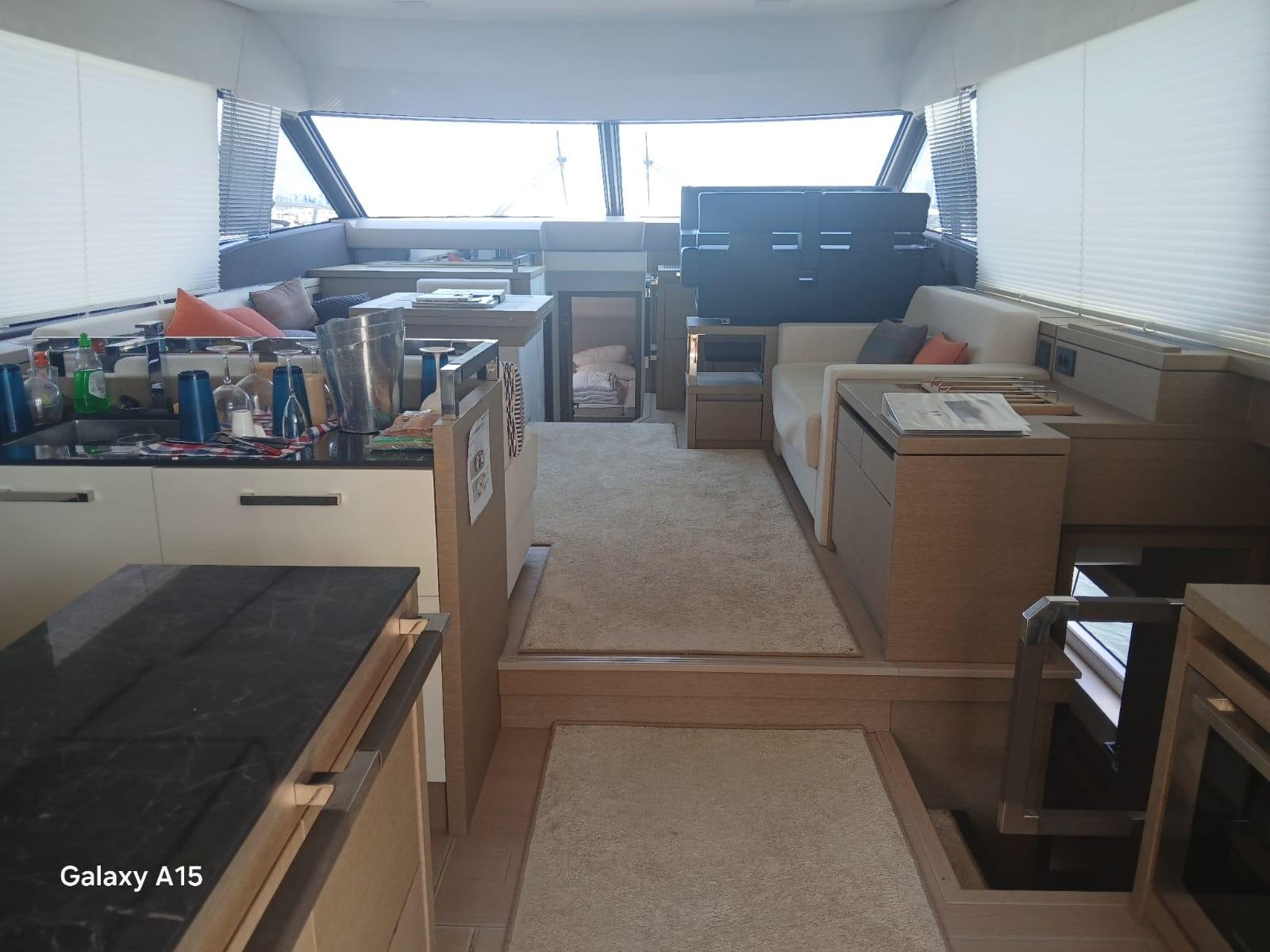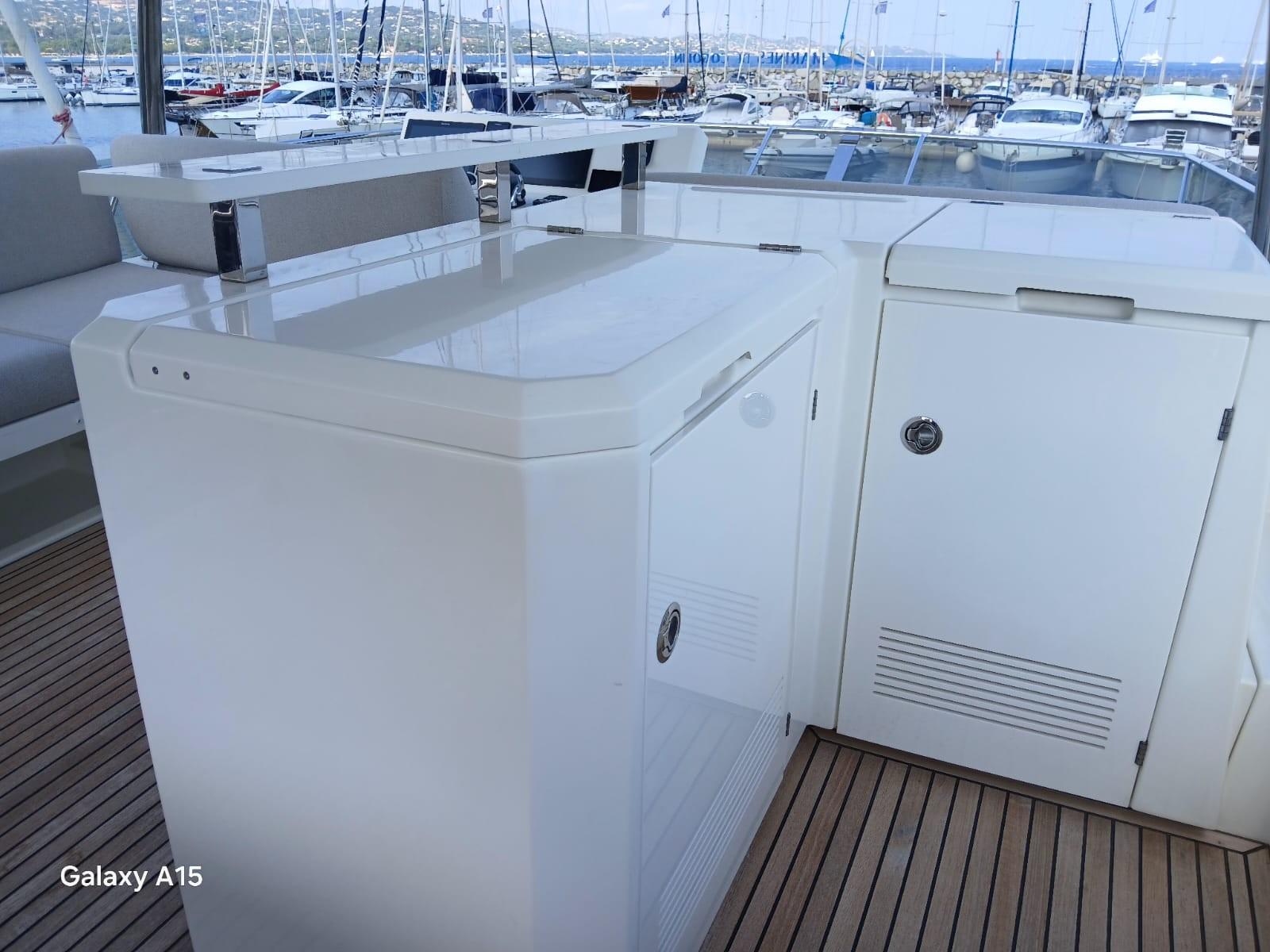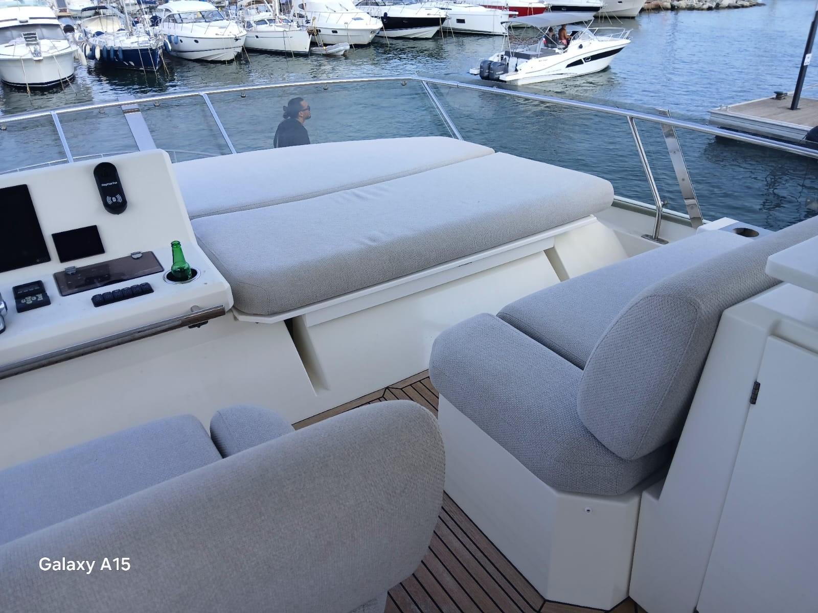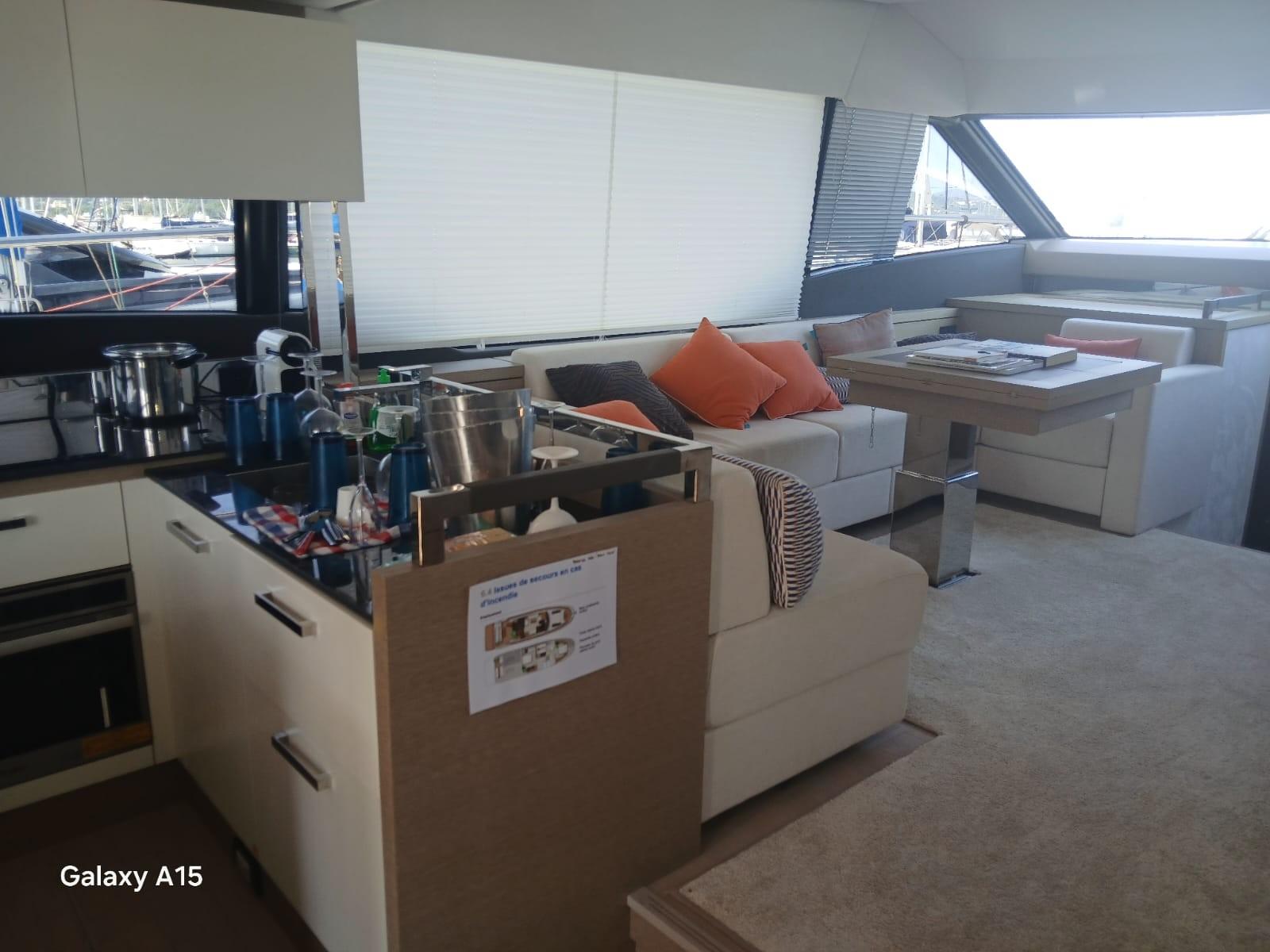 The PRESTIGE 630, a renowned and quality construction reference, combines the modernity of a recent luxury yacht, an XXL Flybridge with panoramic charm, a refined interior bathed in light, and the serenity of stable and autonomous navigation. This star boat is in perfect condition, well-equipped and well-maintained by its owners. Visit by appointment.