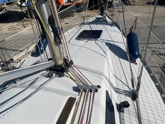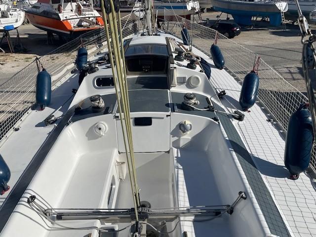 SELECTION 37 is a construction by the JEANNEAU shipyards based on Joubert/Nivelt plans, inspired by the ONE TONNER hull design, very fast on the water and very demanding. On deck, you can notice the double companionway which allows for a larger working area during racing. The deck fittings are very comprehensive, the cockpit is well designed with its wide inclined coamings. Inside, the "ROYALE TFV" VERSION with its 2 cabins (7 berths), bathroom, kitchen, chart table... Well-maintained sailboat, deck, and cockpit repainted in 2024. To visit at PORT MARITIMA - MARTIGUES.