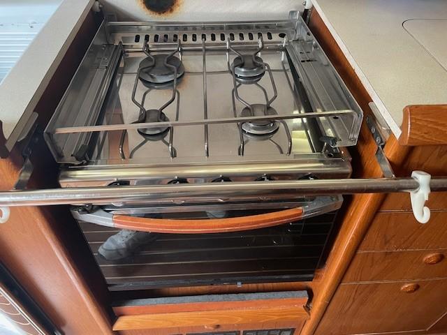 A well-equipped galley kitchen with a 2-basin sink, 2 refrigerators + freezer, ENO oven, hot/cold pressurized water, 50l boiler.