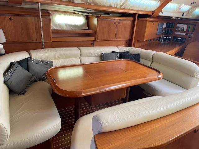 The interior of this sailboat oozes elegance with its 3 double cabins, 2 bathrooms, a bright living room, a well-equipped kitchen creating a sumptuous LIVING SPACE to relax after days at sea.