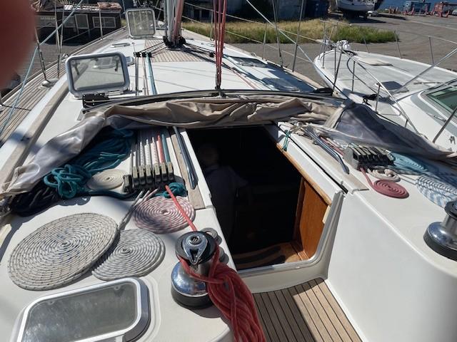 Genoa furler replaced in 2022, staysail furler, all leads to the cockpit, 3 electric winches.