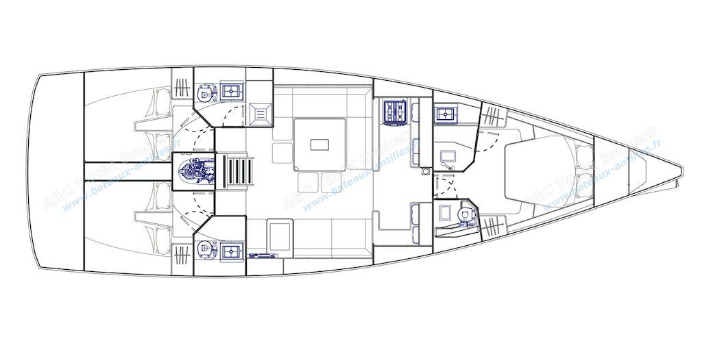 Three-cabin versionOne double owner's forward cabin with a shower room equipped with shower and sink