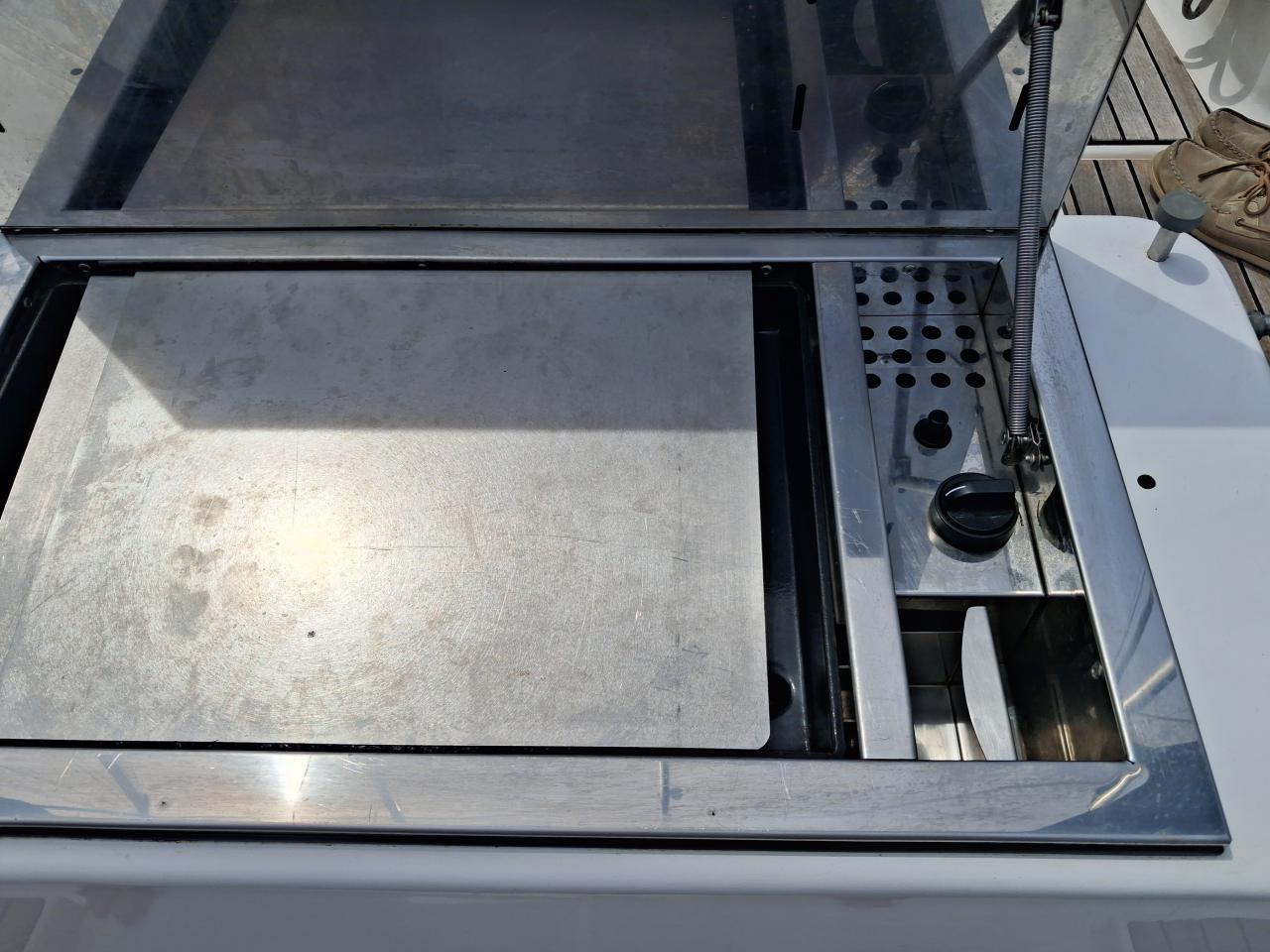 Gas plancha integrated into the central aft bench of the cockpit