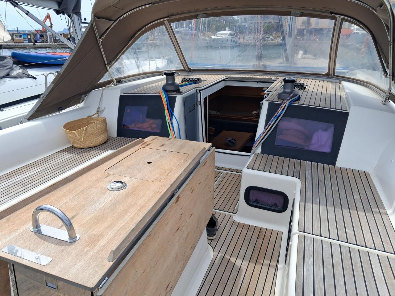 Cockpit, deck, roof, aft deck and side decks in Teak