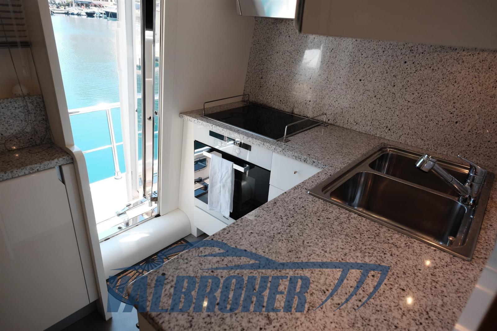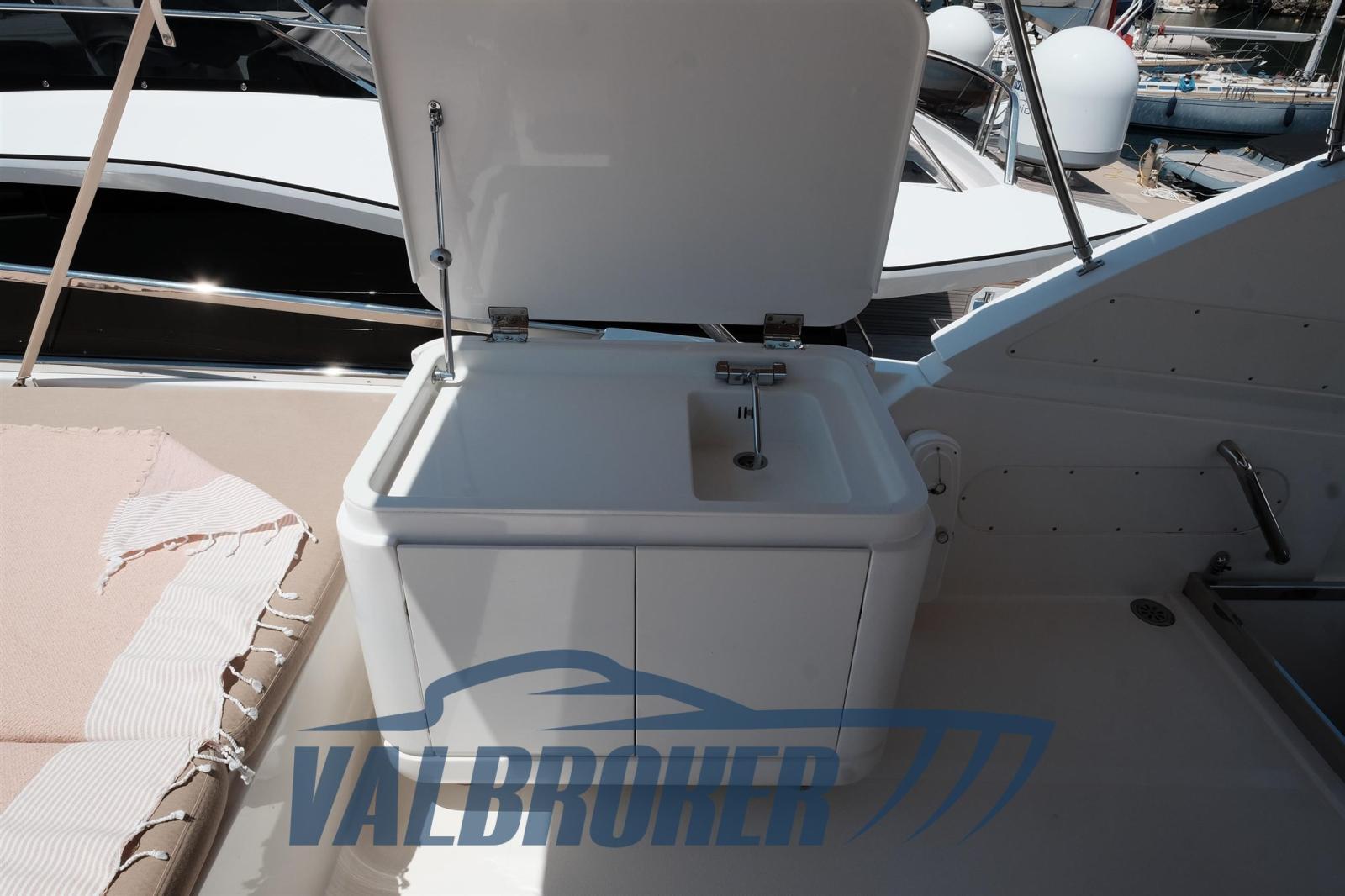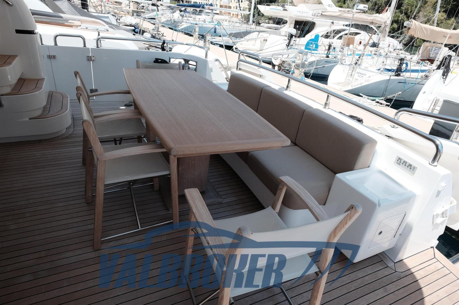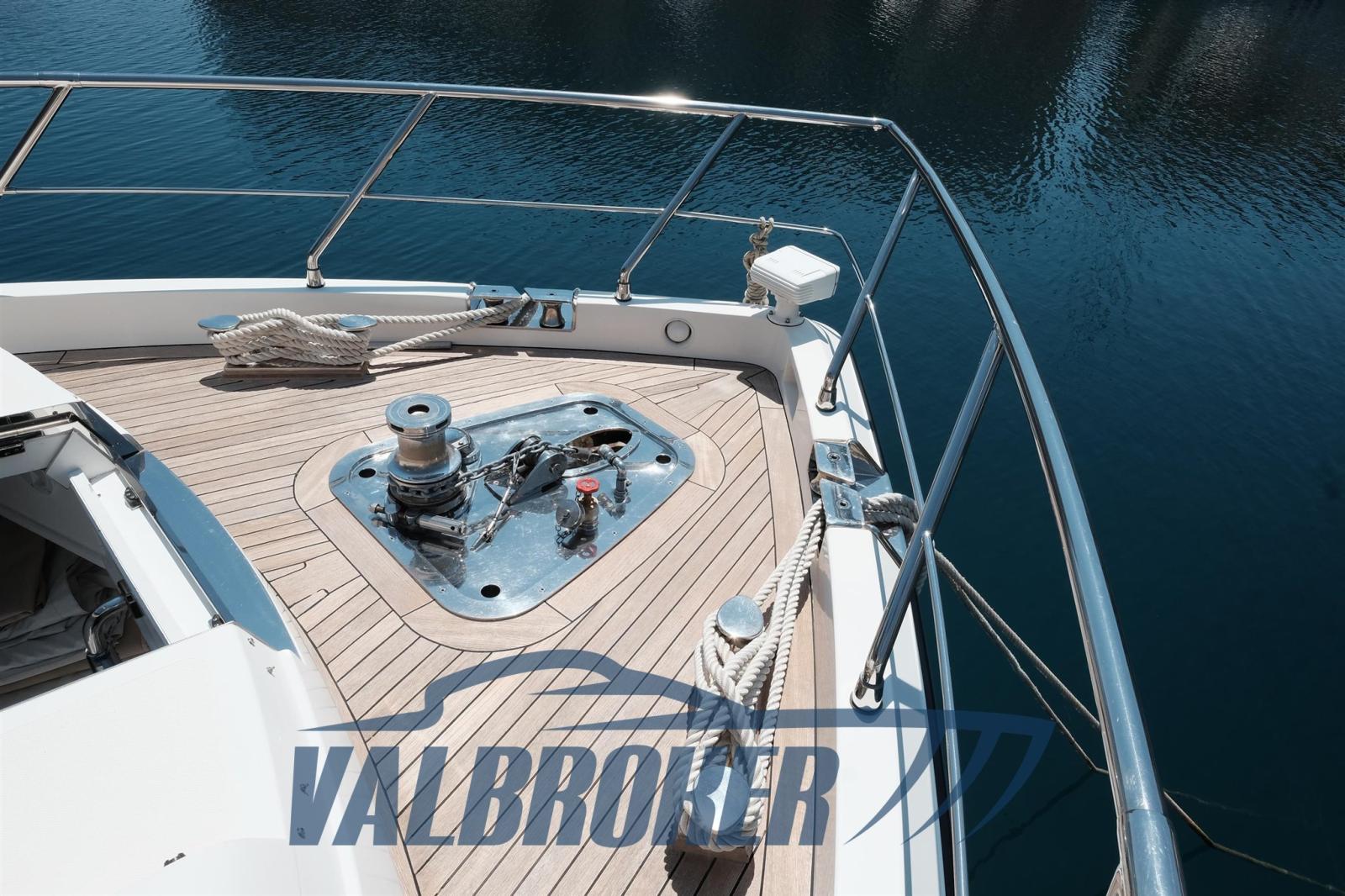 Anchor (2023), Water pressure pump, Deck Shower, Twin Steering, Secondary Propeller, Directional Spotlight, Flaps Indicators, Gangway (a scomparsa, besenzoni, teak), Platform (teak, elettrica a scomparsa), Side door (cucina), Teak Cockpit, Water harbor connector system, Electric Windlass, swimming ladder, cockpit table (teak), Tender (Yamaha 25 HP), Stern Winches.