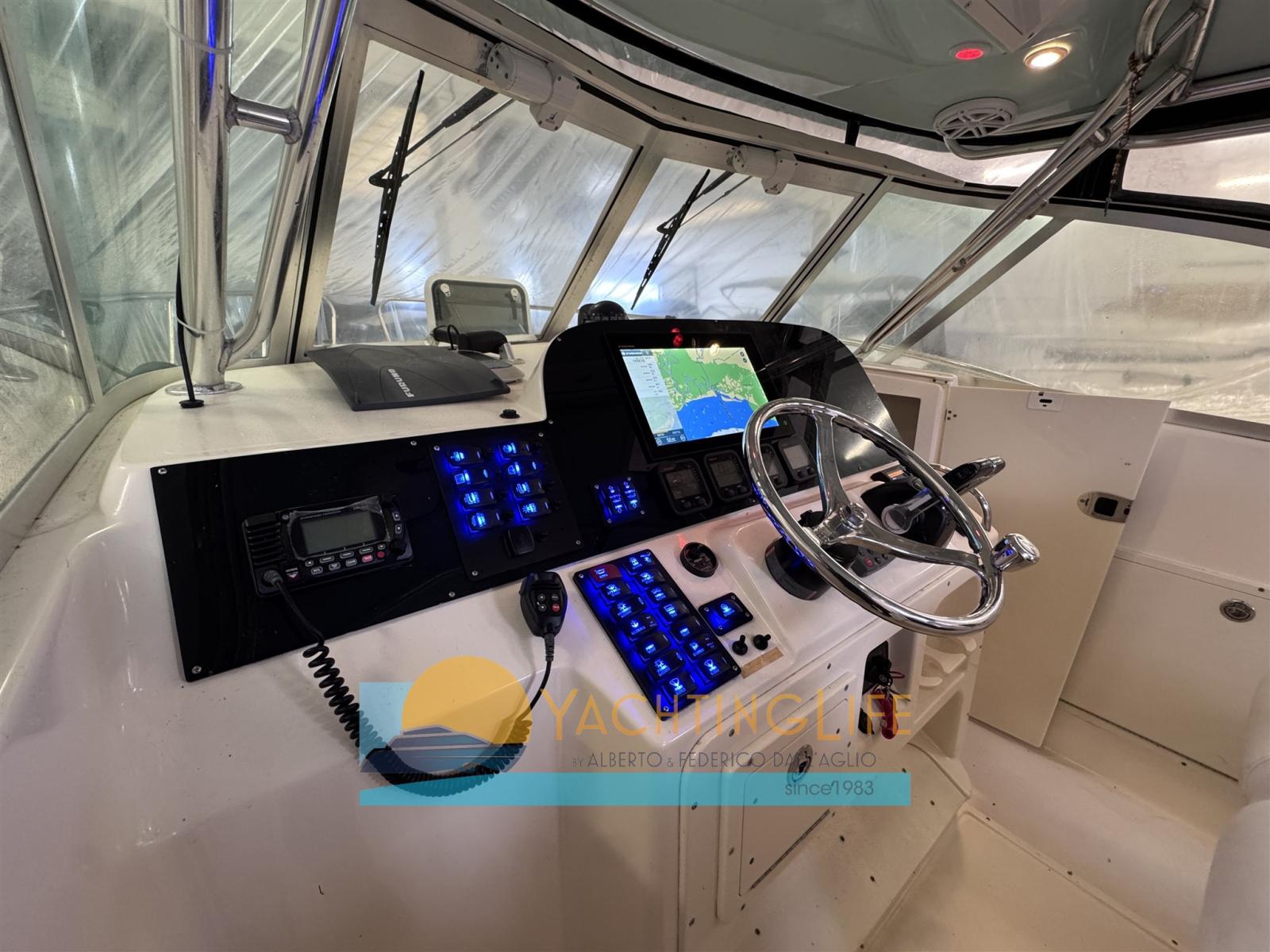 Engine Alarm, Water pressure pump, Special Colour (Celeste), Deck Shower, Headlights fixed on the stem, Hydraulic Flaps, Washbasin in the cockpit, Courtesy Lights, Fenders, Platform, Deck Wash Pump, Entry door, Shorepower connector, Electric Windlass (Lewmar Pro Series 1000 2024), swimming ladder, Horn, T-Top.