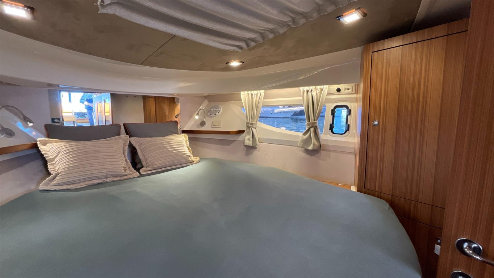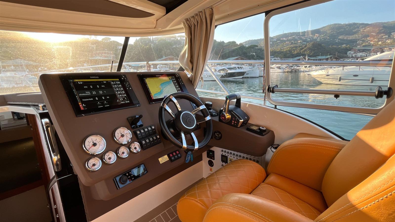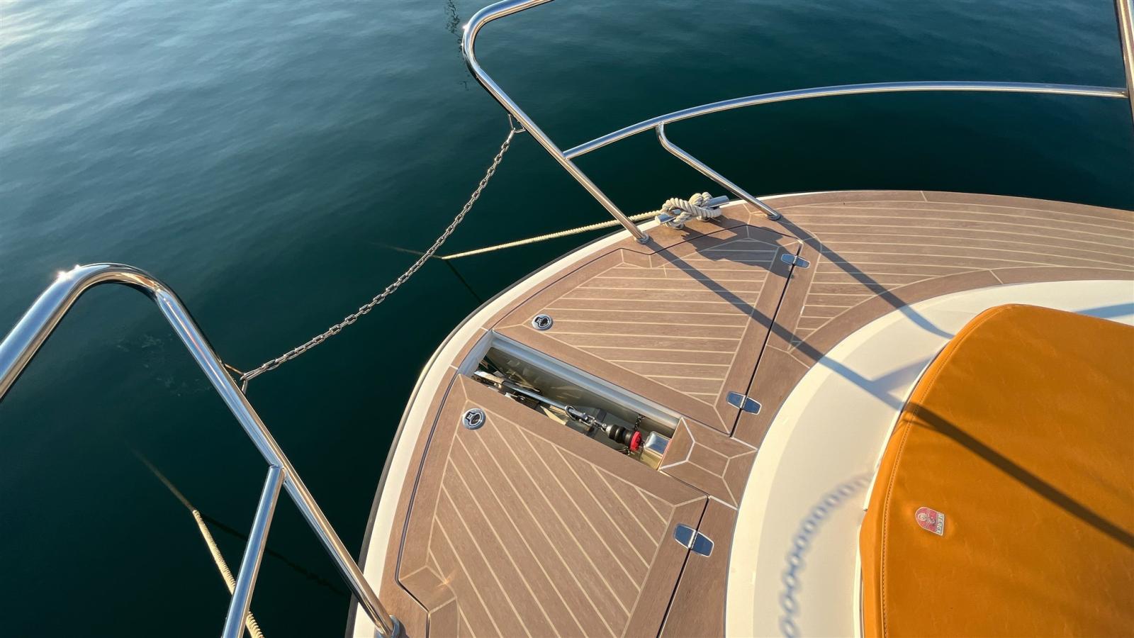 Bow thruster - Boiler - SIMRAD instrumentation (GPS- Autopilot - Echo sounder - Plotter) - Air conditioning - Heating - Windlass - Radio/CD player + FUSION speakers - Grey-white hull - 2 Sunroofs- Joystick- Digital anchor- Solar panel- Internal and external teak- Inverter- Fire extinguishing system - Gas alarm sensor - Direct access to the foredeck through a door in the windshield - Complete cushions - Integrated smart canopy solution for total cockpit closure