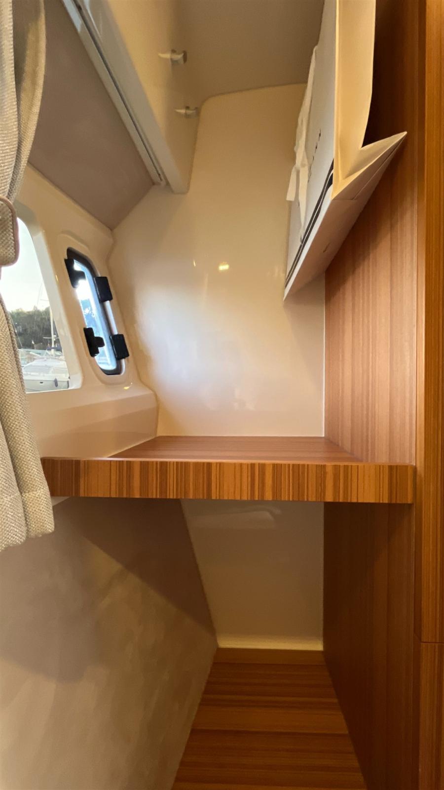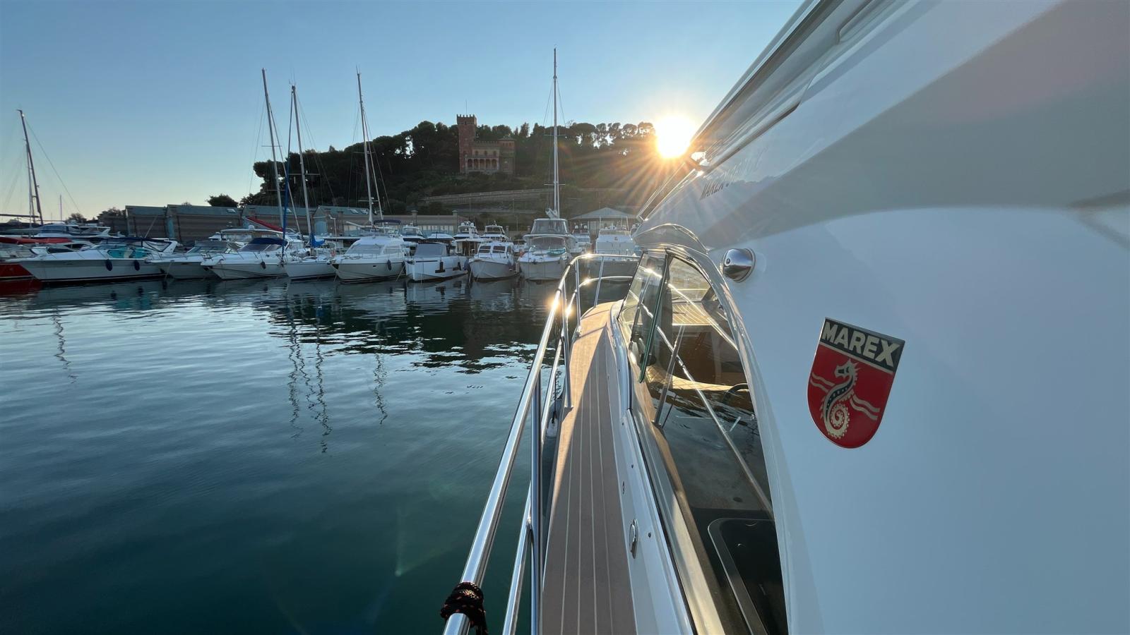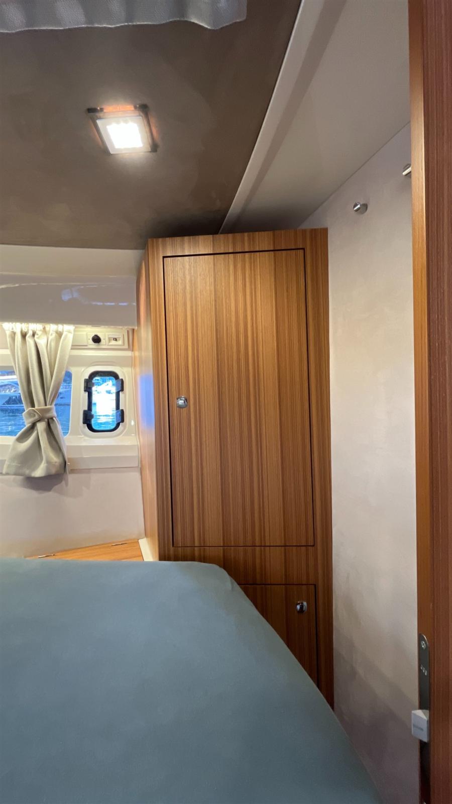 Bow thruster - Boiler - SIMRAD instrumentation (GPS- Autopilot - Echo sounder - Plotter) - Air conditioning - Heating - Windlass - Radio/CD player + FUSION speakers - Grey-white hull - 2 Sunroofs- Joystick- Digital anchor- Solar panel- Internal and external teak- Inverter- Fire extinguishing system - Gas alarm sensor - Direct access to the foredeck through a door in the windshield - Complete cushions - Integrated smart canopy solution for total cockpit closure