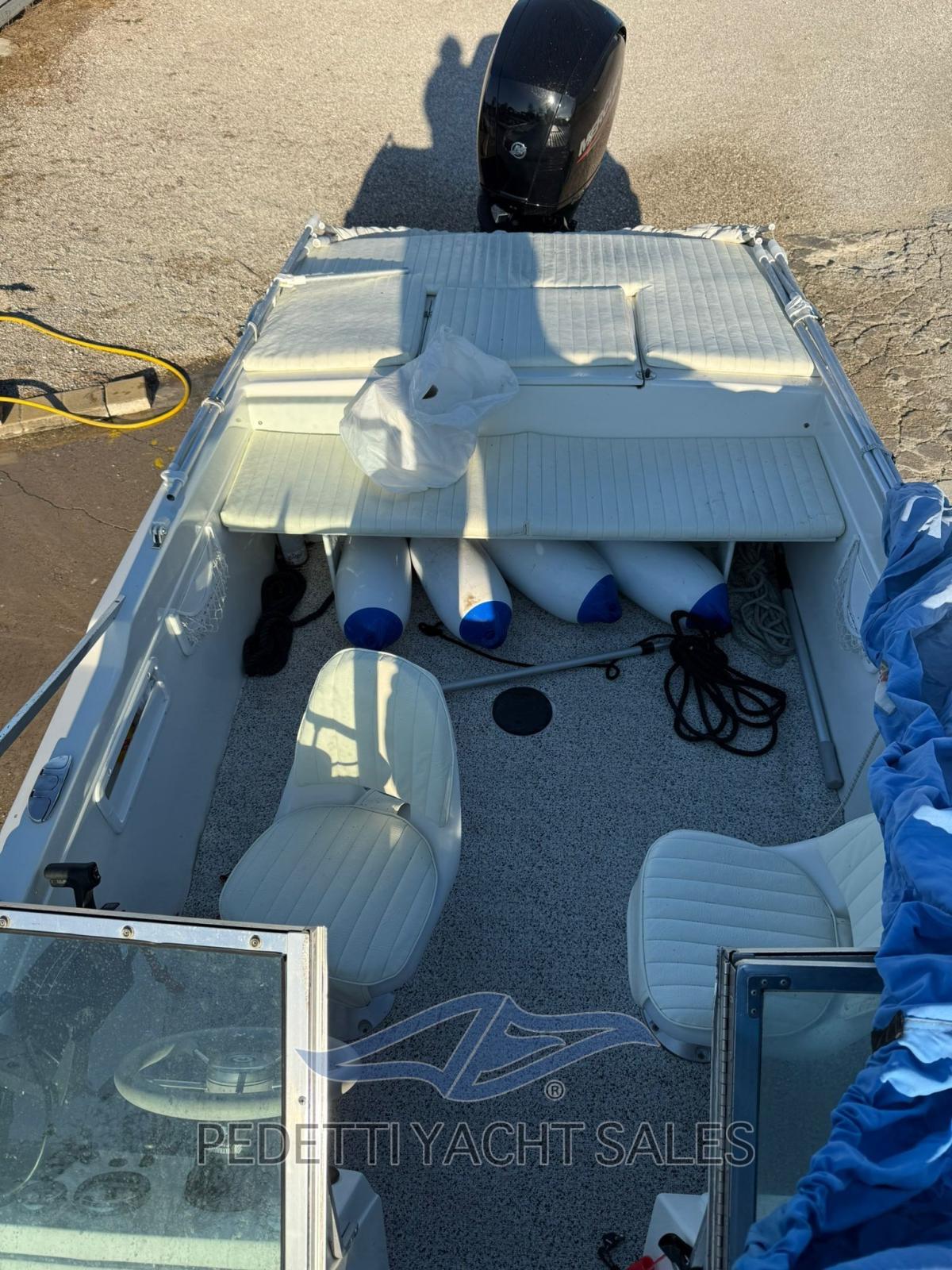 Glastron Yacht 007 is an iconic speedboat, famous for its connection to the James Bond universe, in particular the GT-150 model used in the film "Live and Let Die" (1973). This compact yet powerful motorboat, featuring a sporty design and high-quality materials, is known for its dynamic performance and durable fiberglass construction. With reliable outboard engines, the Glastron 007 blends American style and cinematic appeal, making it a collector's item for boating enthusiasts and cult movies. It is perfect for those who love to sail with energy and a touch of legend. 52 knots of pure adrenaline!! 100 liters of tank, and 80 of fresh water, new Quick Silver 220v battery charger, new cockpit navigation and courtesy lights, new electrical system and new bilge pumps completely refitted in 2023. 150hp engine with 50 engine hours. An opportunity not to be missed to have fun with a boat also chosen by James Bond.