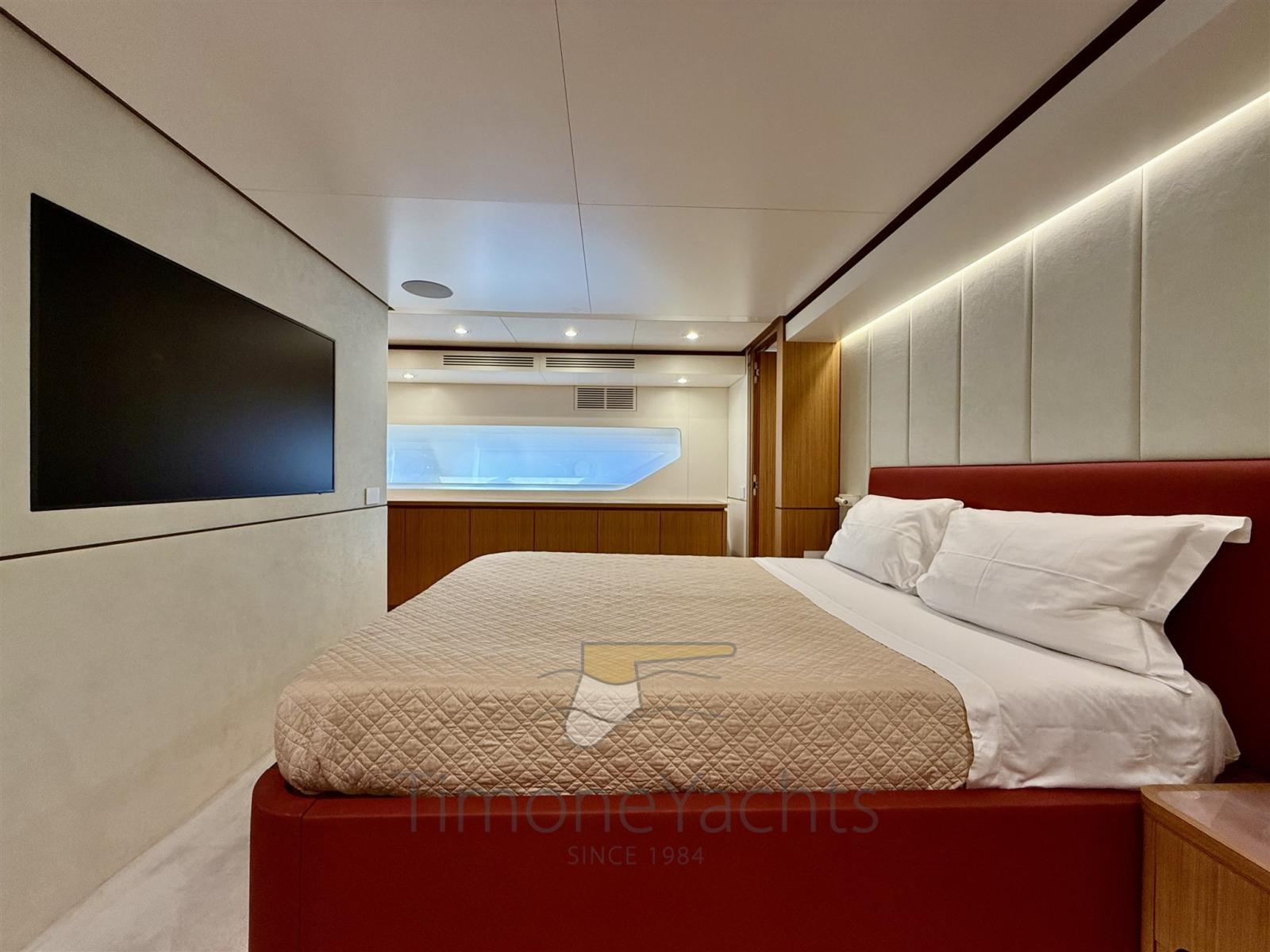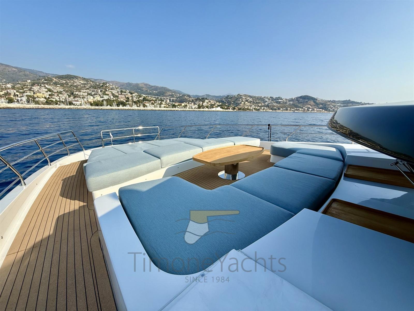 Fume/Gas Detector, Engine Alarm, Bilge Alarm, Alternator, Auto Dynamic Trim Interceptor, Water pressure pump, Auto-Trim, Teak Side Decks, Shore power cable, Deck Shower, Twin Steering, Directional Spotlight, Hydraulic Flaps, Tender Garage, Hard top, Fire Extinguishing System, Flaps Indicators, Anchor Chain Washdown, Courtesy Lights, Underwater lights, Gangway, Platform, Deck Wash Pump, Teak deck, Entry door, 2 Side door, Teak Cockpit, Shorepower connector, Water harbor connector system, Electric Windlass, Stabilizers (Seakeeper 16\18 + Fins (zero speed + underway))), cockpit table, Tender (Surmarine ST 400 Prestige 40 Cv Yamaha), guard rails with gates, Horn, 2 Stern Winches, Bow Winches.