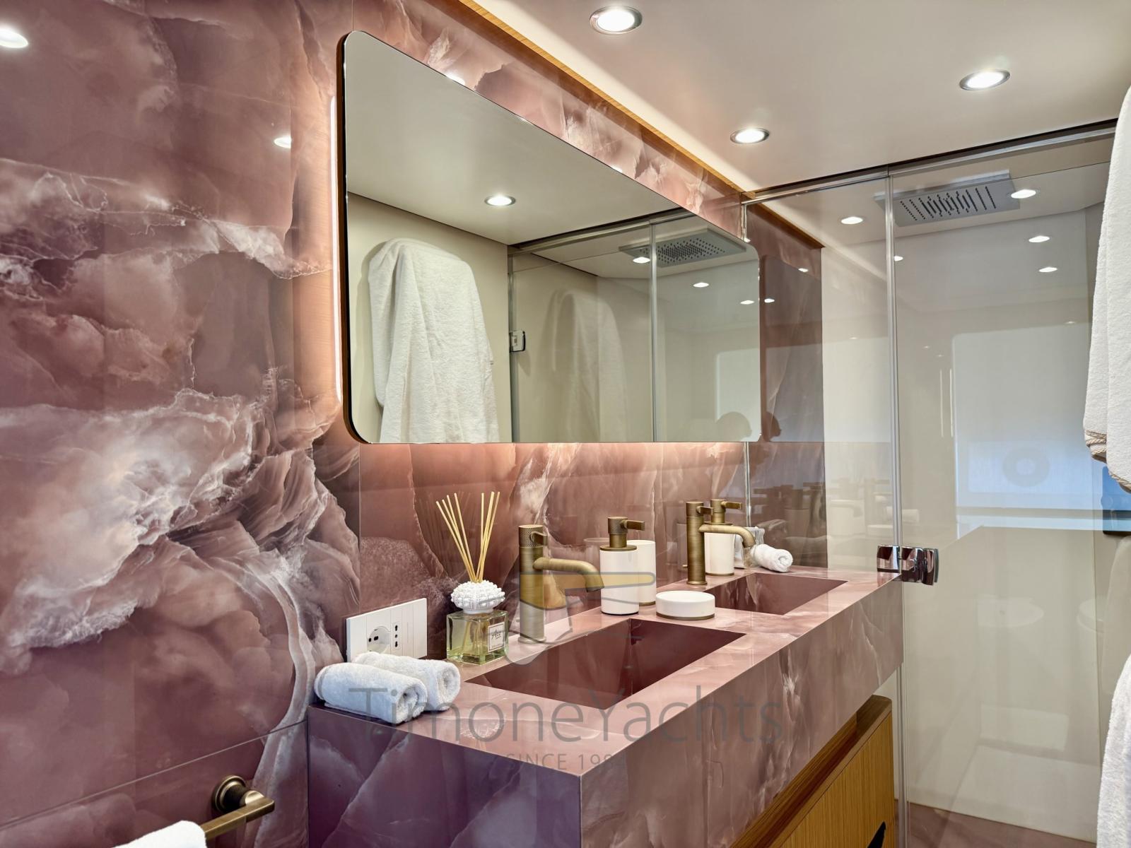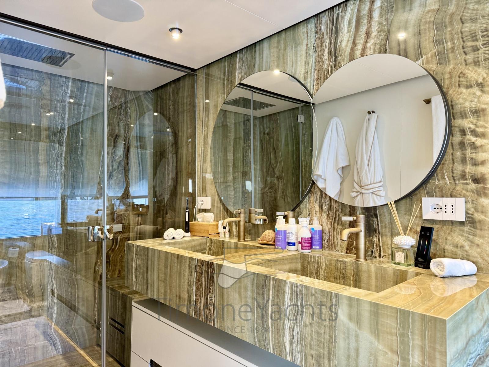 Each of the remaining 3 guests cabin, down the lower deck, could easily act as second master cabin, either for space either for refined materials.