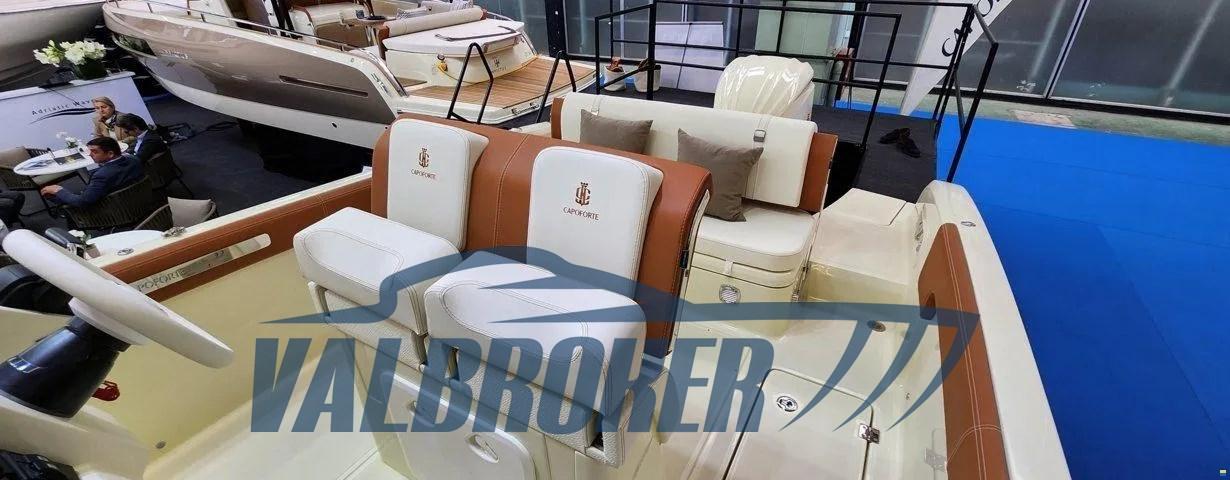 DEMO boat ready for delivery. Equipped with 1x250HP Yamaha outboards. Model year 2023. Visible in the showroom on Lake Garda.