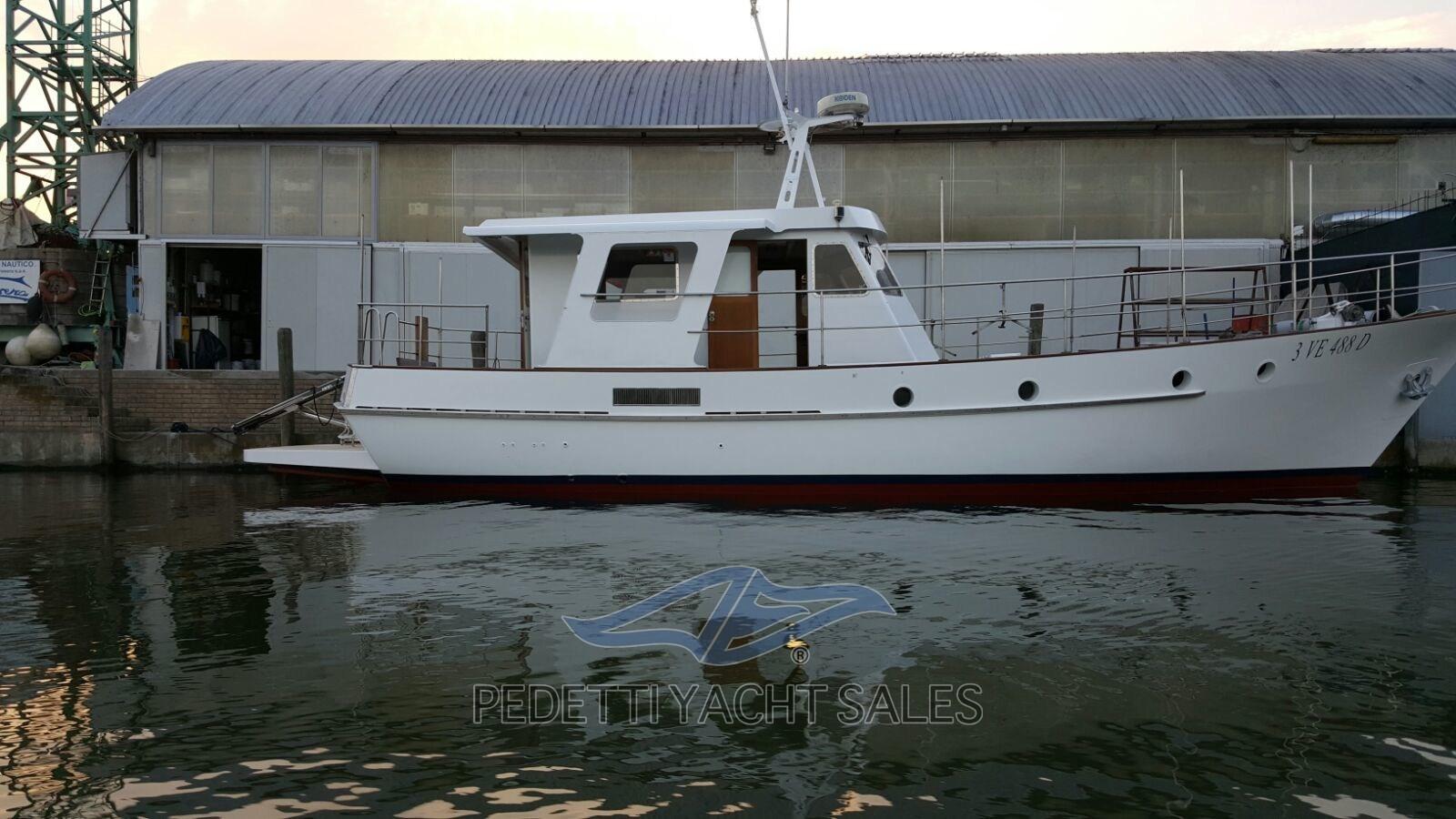 13-meter Trawler swimsuit completely refitted completely in solid wood and teak. Works carried out 2015 reconditioned engines, 2018 bow teak, 2021 totally new bathroom in corian, 2022 Garmin with autopilot and whf, 2024 generator with hot/cold air conditioning system. The Rondolini Shipyard in Pesaro, founded in the 50s by shipwright Rondolini, has distinguished itself for the construction of robust, elegant and artisanal quality boats. Specialized in wooden motorboats and yachts, the shipyard has been able to combine the Italian nautical tradition with a refined and functional design, addressing customers who are attentive to both sailing performance and aesthetics. Rondolini boats are known for their solidity and reliability, ideal for both coastal navigation and more demanding cruises, with well-kept interiors and well-distributed spaces to ensure comfort and safety on board. The shipyard has represented a point of reference in the Marche artisan shipbuilding, keeping alive the value of the traditional craft with an approach to innovation and detail.