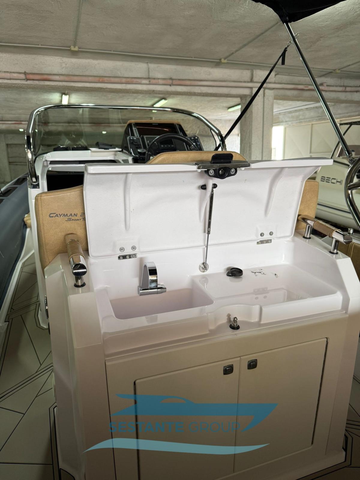 Engine Alarm, Alternator, Water pressure pump, Teak Side Decks, Deck Shower, Washbasin in the cockpit, Courtesy Lights, Teak deck, Teak Cockpit, Shorepower connector, Rollbar, Electric Windlass, swimming ladder, Horn.