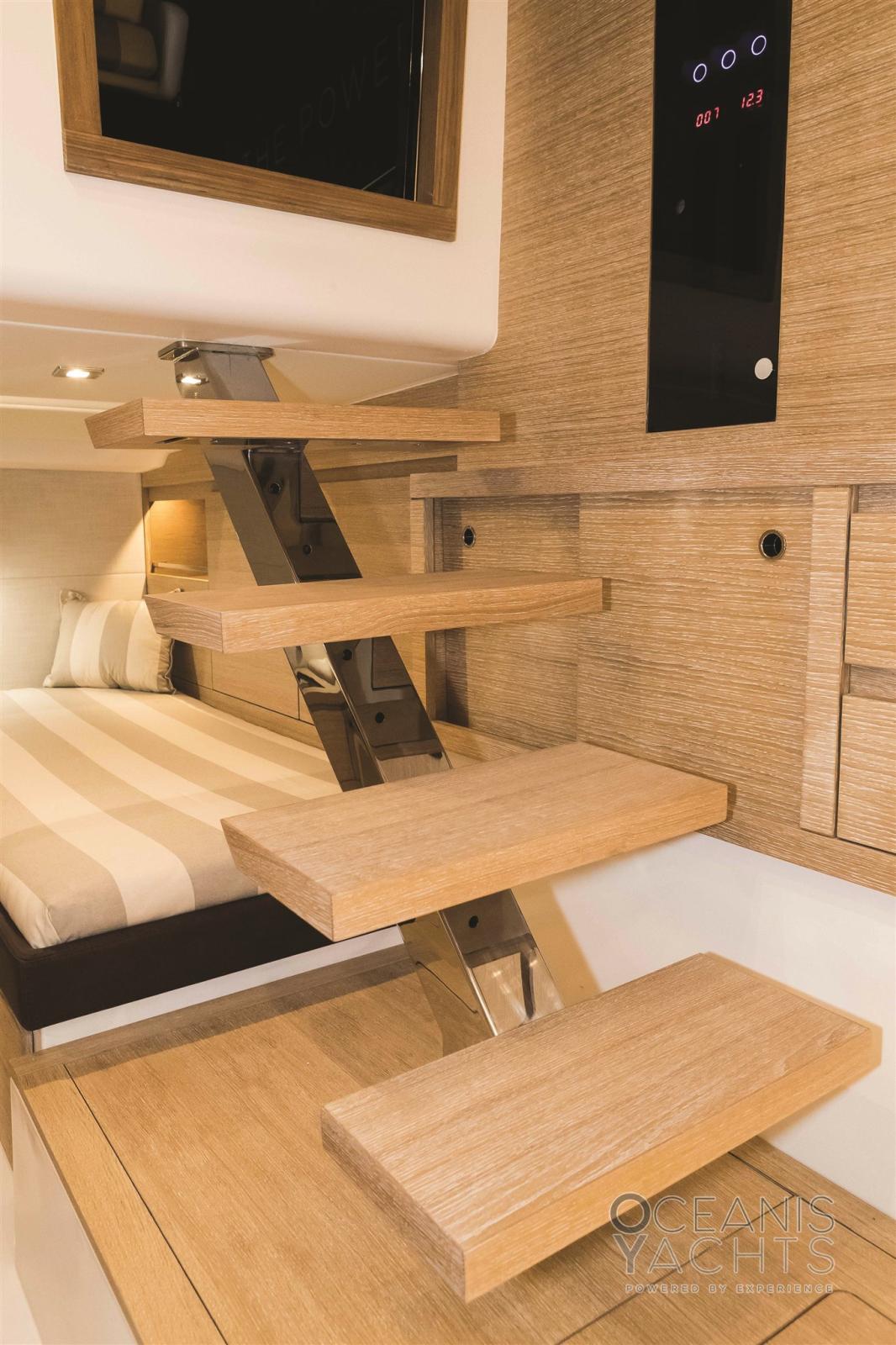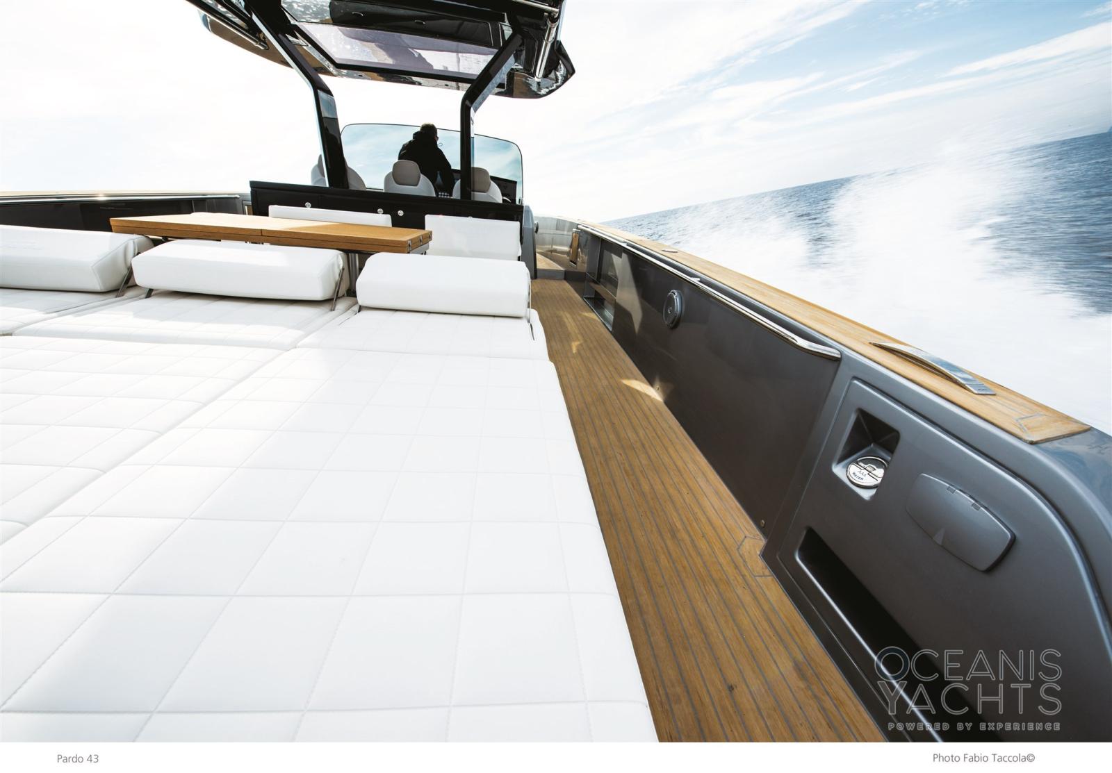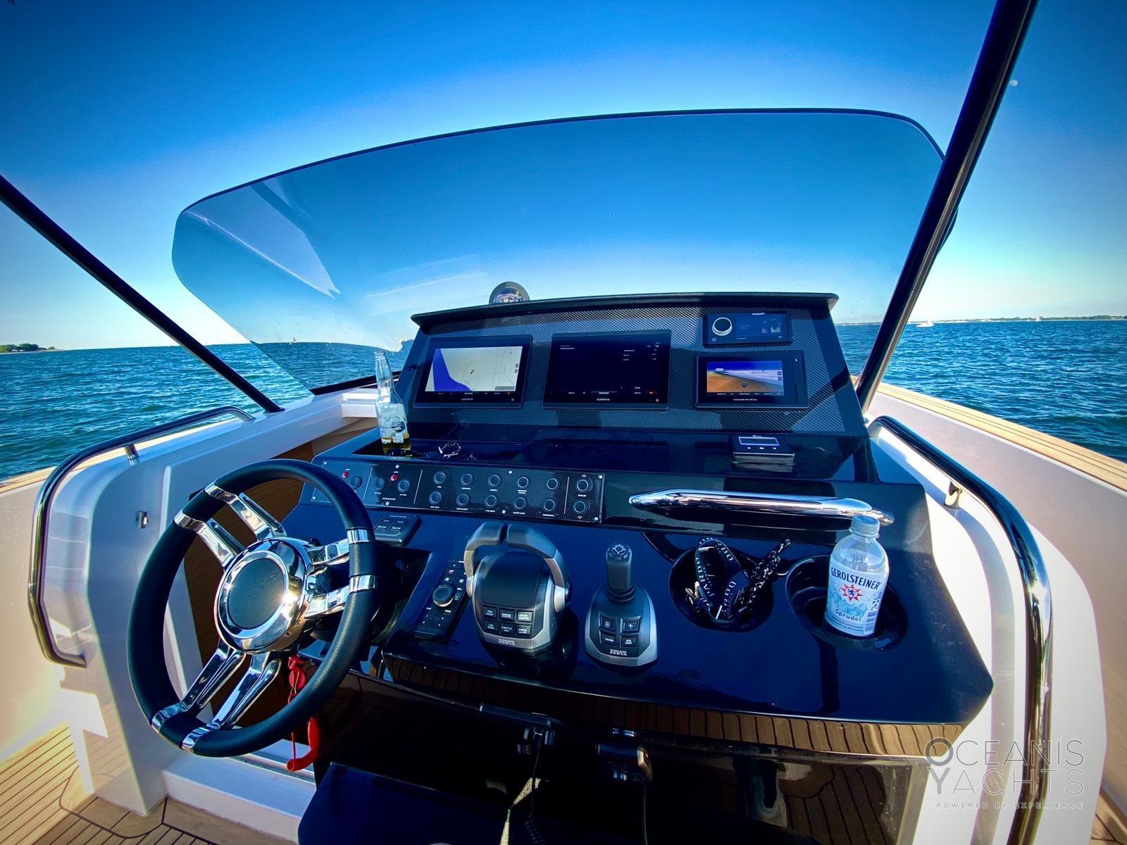 Deck Shower, Secondary Propeller, Hard top, Jet-Ski, Solar panels, Gangway, Teak Cockpit, Shorepower connector, Water harbor connector system, Rollbar, Electric Windlass, swimming ladder, cockpit table, T-Top, Teak Deckhouse, Winch.