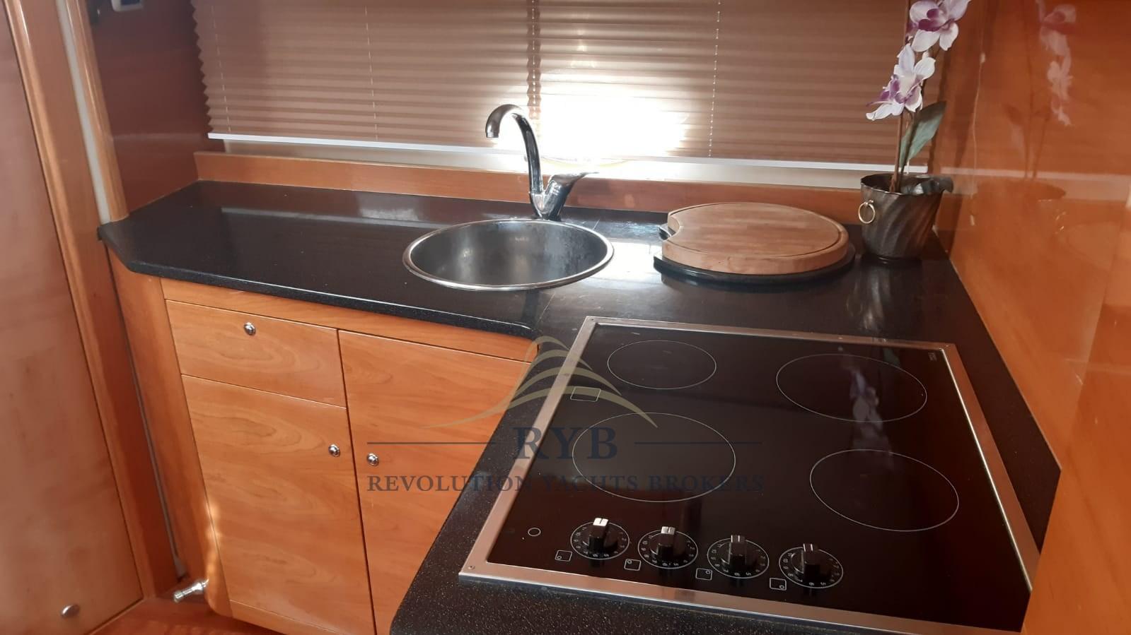 Galley, Burner (POZZETTO), Deck Refrigerator, Ceramic hot plate.