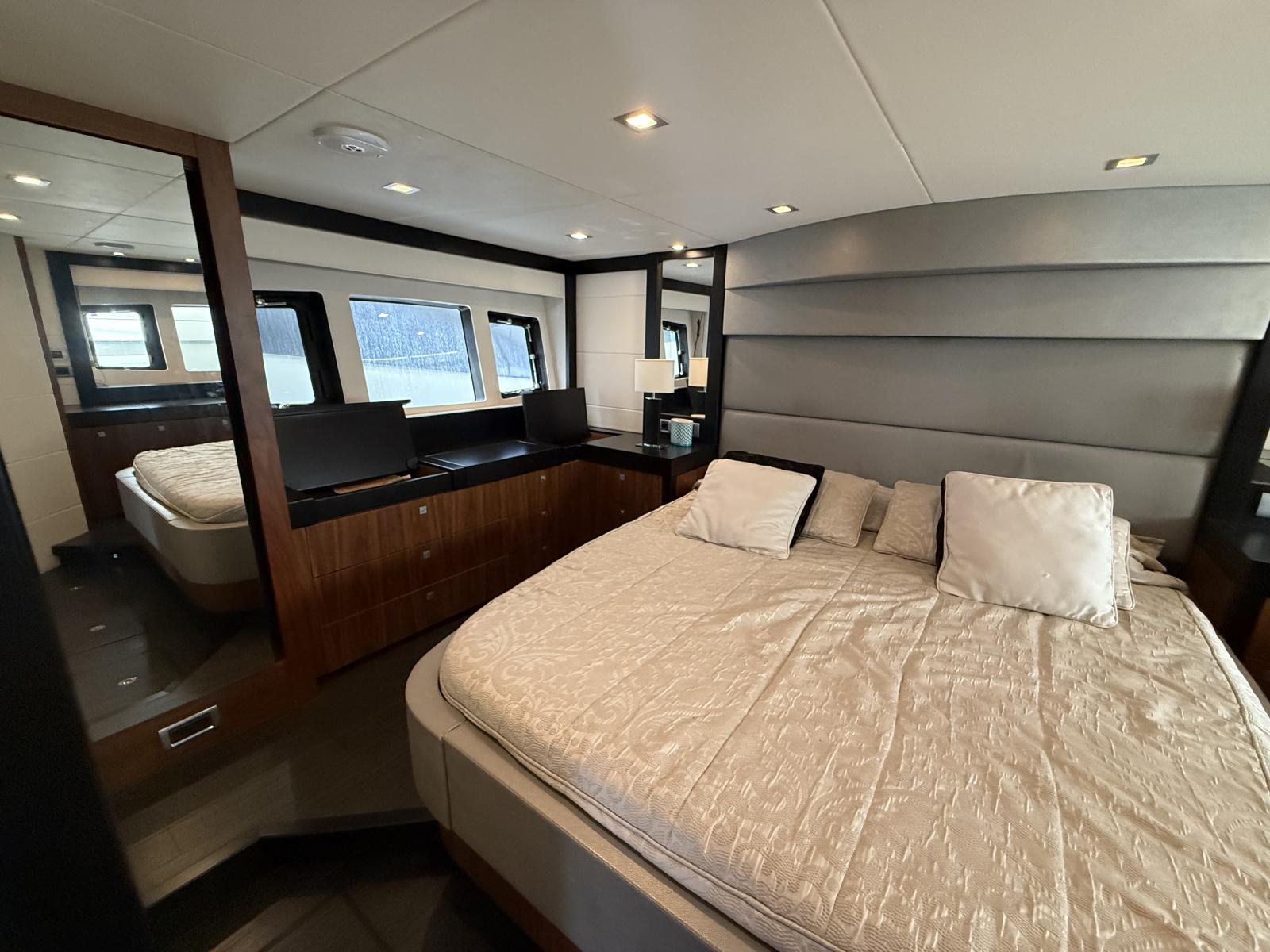 The Predator 60 boasts three elegantly appointed cabins, comfortably accommodating up to six guests in luxurious surroundings. Every detail reflects Sunseeker's commitment to luxury, performance, and comfort.