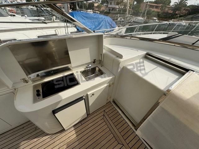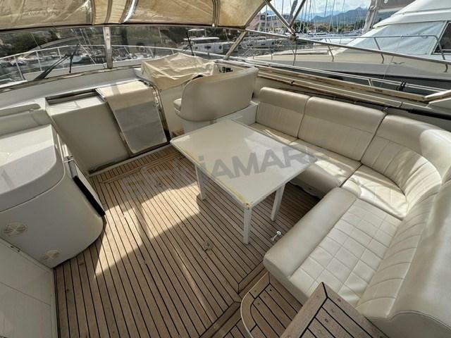 Engine Alarm, Bilge Alarm, Water pressure pump, Shore power cable, Safety rail, Deck Shower, Directional Spotlight, Hydraulic Flaps, Tender Crane, Fire Extinguishing System, Anchor Chain Washdown, Washbasin in the cockpit, Courtesy Lights, Underwater lights, Fenders, Gangway (Idraulica), Automatic Bilge Pump, Teak Cockpit, Shorepower connector, Voltage Rectifier, Rollbar, Electric Windlass, swimming ladder, Saddles for tender, cockpit table, Living Room Foldable Table.