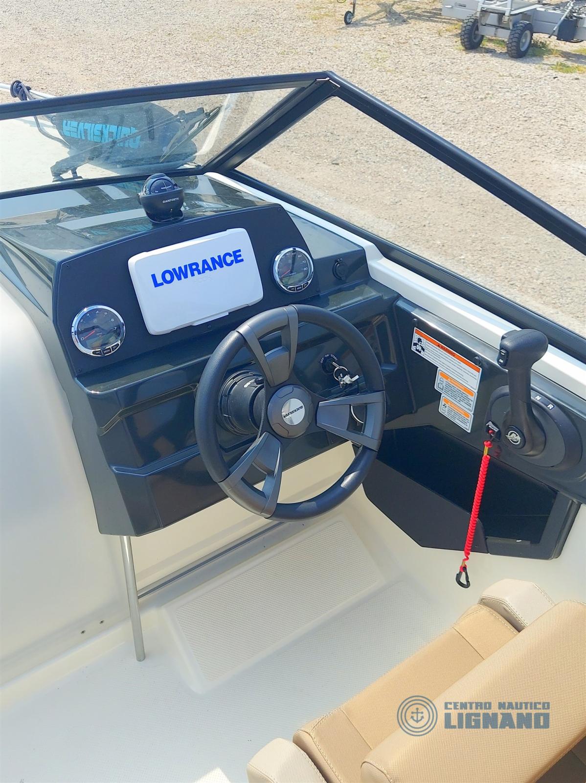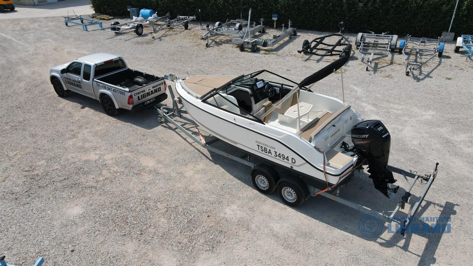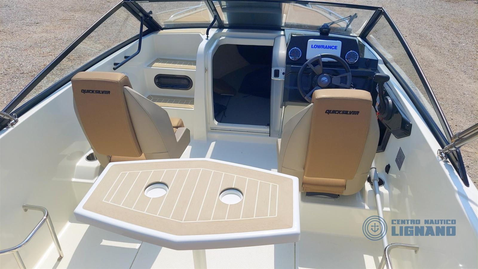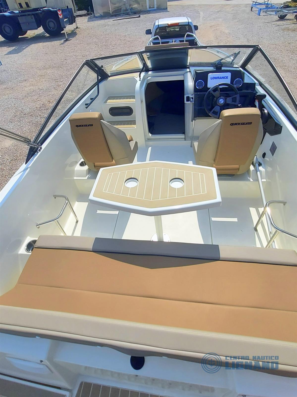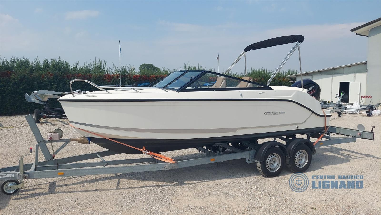 Boat Quicksilver 605 like new, perfect in every detail, visible at Centro Nautico Lignano, NO TROLLEY, equipped and ready to be used, Mercury F115 EXPTL CT engine under warranty, production 2020, launch in June 2021!, complete with bow sundeck, cockpit table, cabin interior with 2 beds, hydraulic steering, cockpit cover sheet, adjustable seats, awning with stainless steel bimini, high resolution color cartographic GPS, depth sounder, fenders (4), half-sailor, fire extinguishers, fuel tank 160lt, water tanks 32lt, CE-C certification for 6 people, 2 beds, ladder to the sea, 2 lockers at the stern, navigation lights, bow locker, self-emptying cockpit, hand shower, cockpit table with teak, stern sundeck, hydraulic steering. In vision at Centro Nautico Lignano, on land, in the agency. Info 0431 53363. Commissions 5% on the final price agreed.