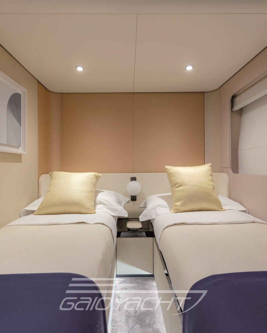 Electric floodlight with additional control on the second rudder; 3xVolvo IPS 1350 (1000 hp) optional; Teak bow table; Automatic cockpit awning; Cockpit cabinet with teak top; Co-pilot seat on the flybridge;
