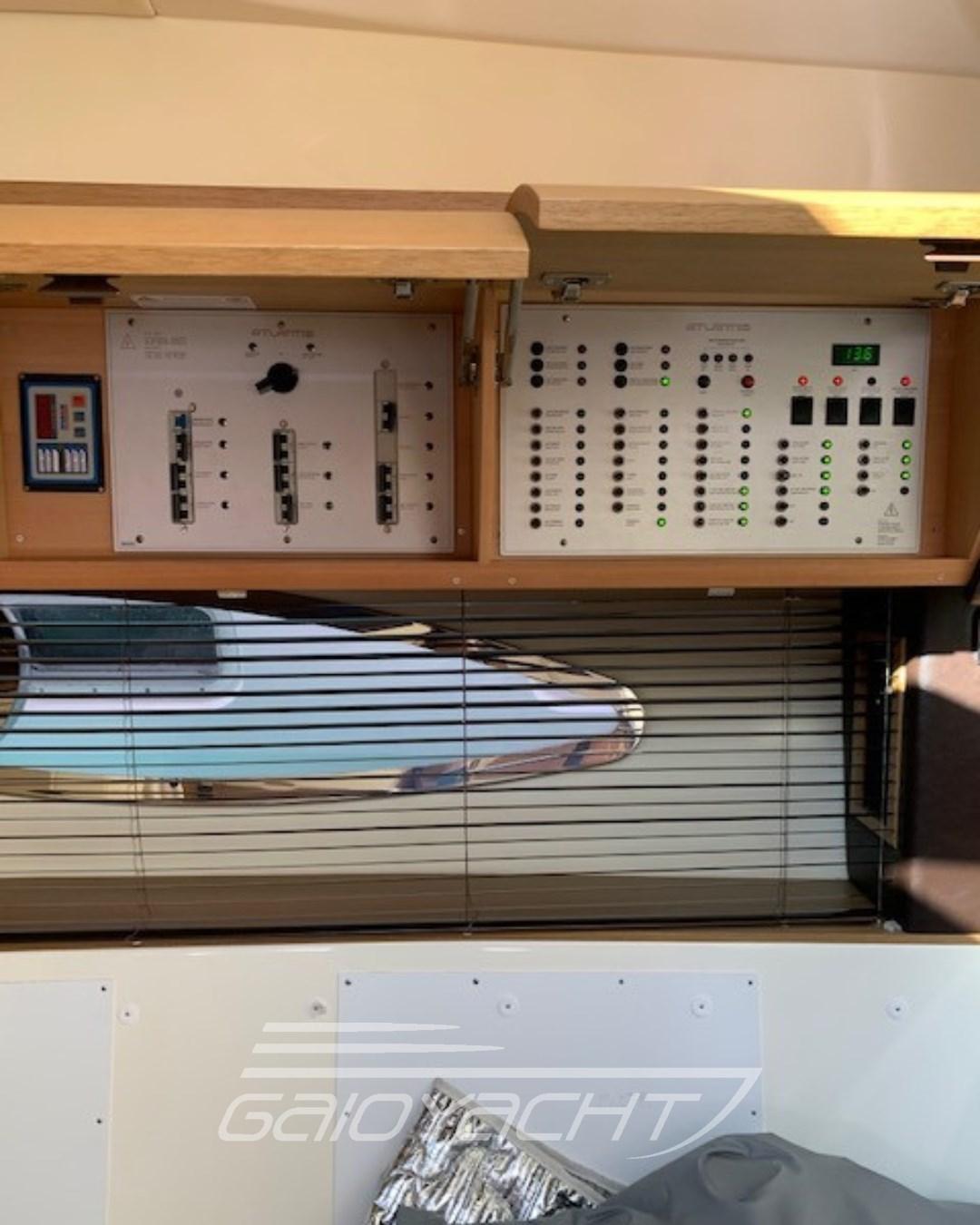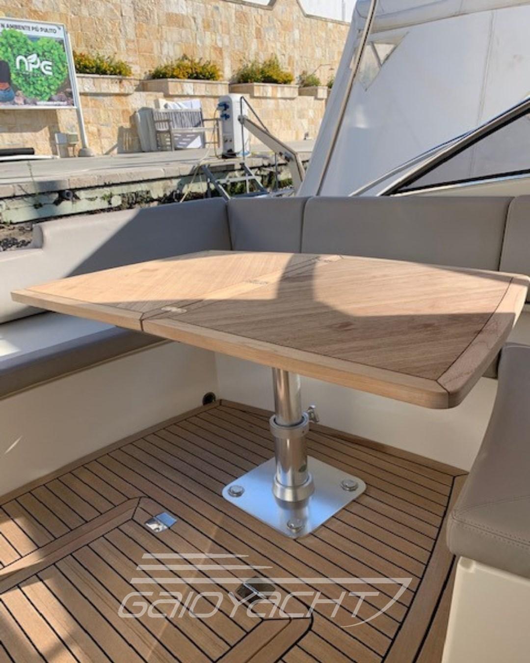 Fume/Gas Detector, Engine Alarm, Bilge Alarm, Water pressure pump, 5 Batteries (2 per i moti; 2 servizi; 1 generatore), Deck Shower, Hard top (elettrico 12v), Fire Extinguishing System, Compressor Air System, Courtesy Lights, Platform, Automatic Bilge Pump, Manual Bilge Pump, Teak Cockpit, Shorepower connector, Water harbor connector system, Electric Windlass, swimming ladder, Stabilizers, cockpit table (sali e scendi).