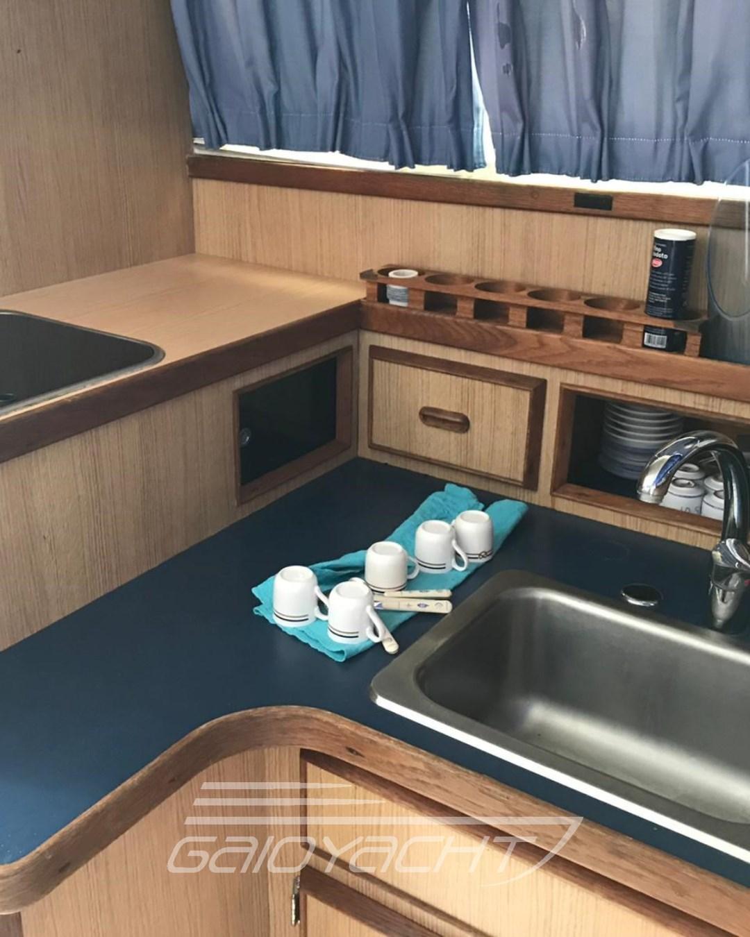 Engine Alarm, Bilge Alarm, Water pressure pump, 3 Batteries, Deck Shower, Twin Steering, Headlights fixed on the stem, Electric Flaps, Hydraulic Flaps, Tender Crane, Courtesy Lights, Gangway, Automatic Bilge Pump, Manual Bilge Pump, Entry door, Shorepower connector, Water harbor connector system, Voltage Rectifier, Rollbar, Electric Windlass, swimming ladder, cockpit table, Horn.
