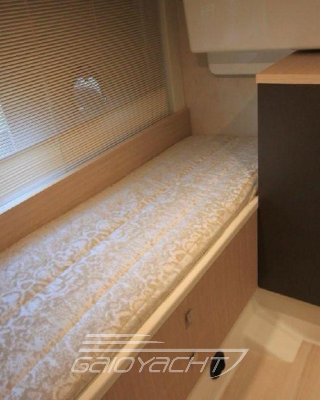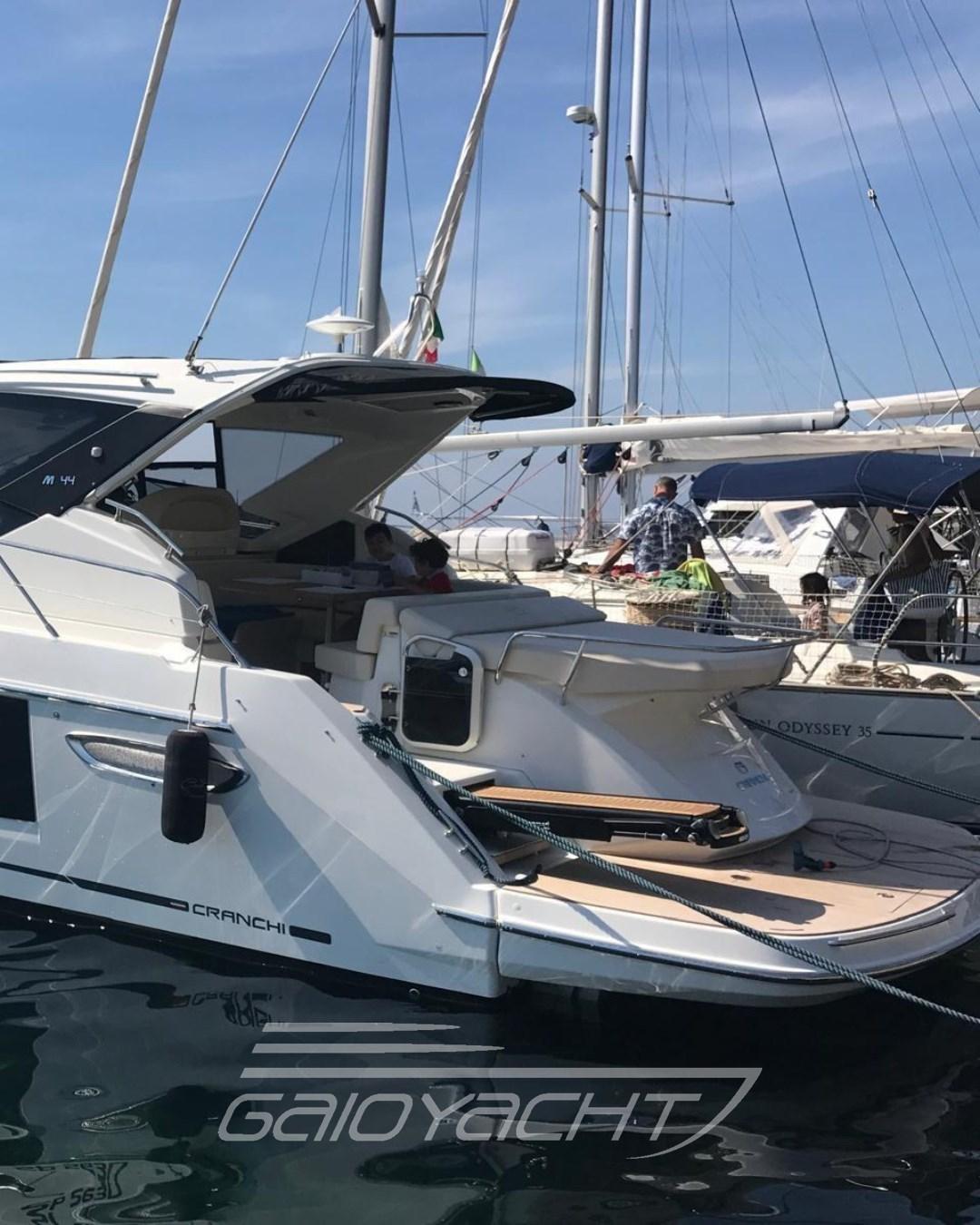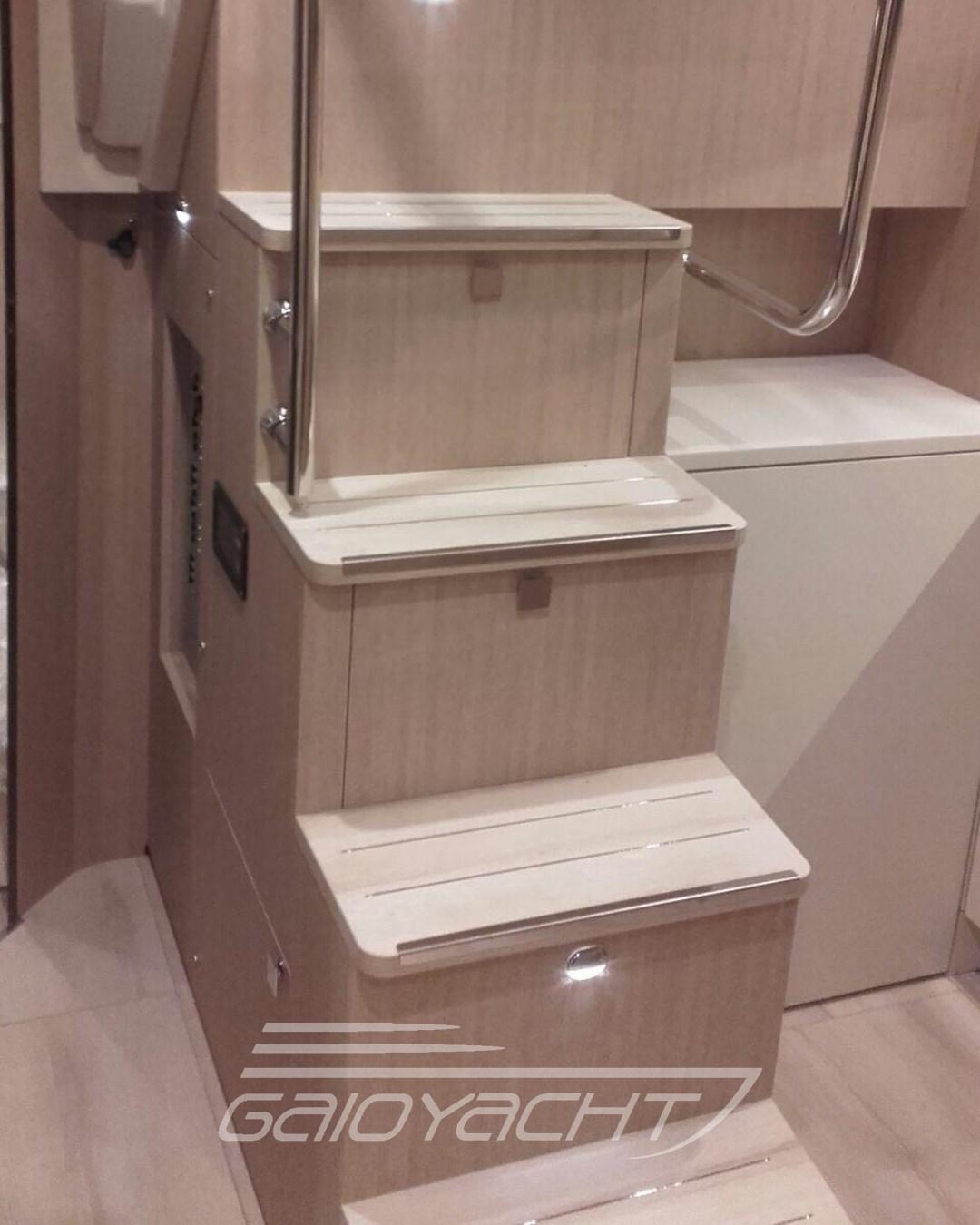 Anchor (Inox), Electric Engine Compartment Opening, Teak Side Decks (Solo plancetta), Deck Shower, Tender Garage, Hard top, Washbasin in the cockpit, Courtesy Lights, Gangway (Idraulica a scomparsa), Shorepower connector, Water harbor connector system, Electric Windlass, cockpit table, Living Room Foldable Table, Bow Winches.