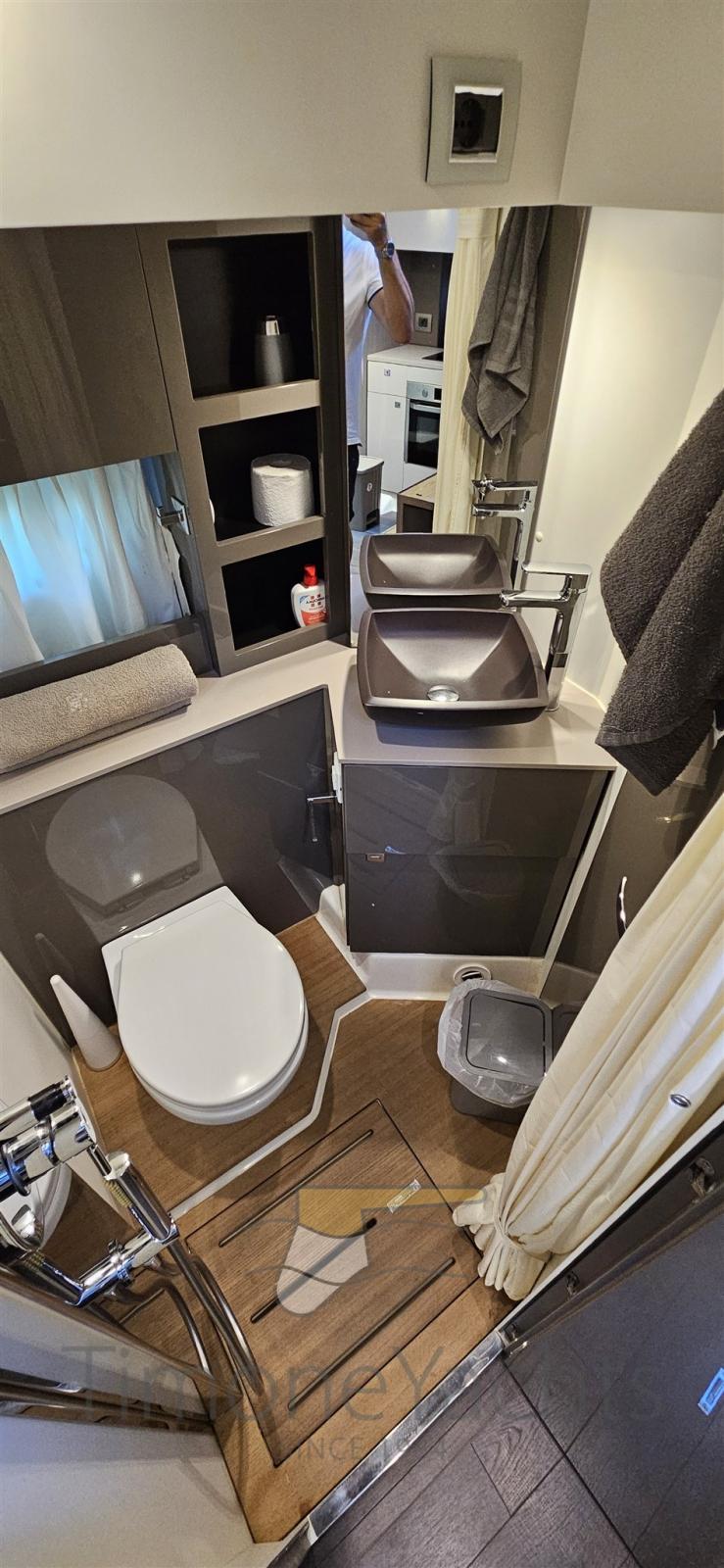Teak Side Decks, Special Colour (antracite), Washbasin in the cockpit, Gangway (idraulica a scomparsa), Platform (affondabile), Teak deck, Teak Cockpit, cockpit table (teak abbattibile), Teak Deckhouse.