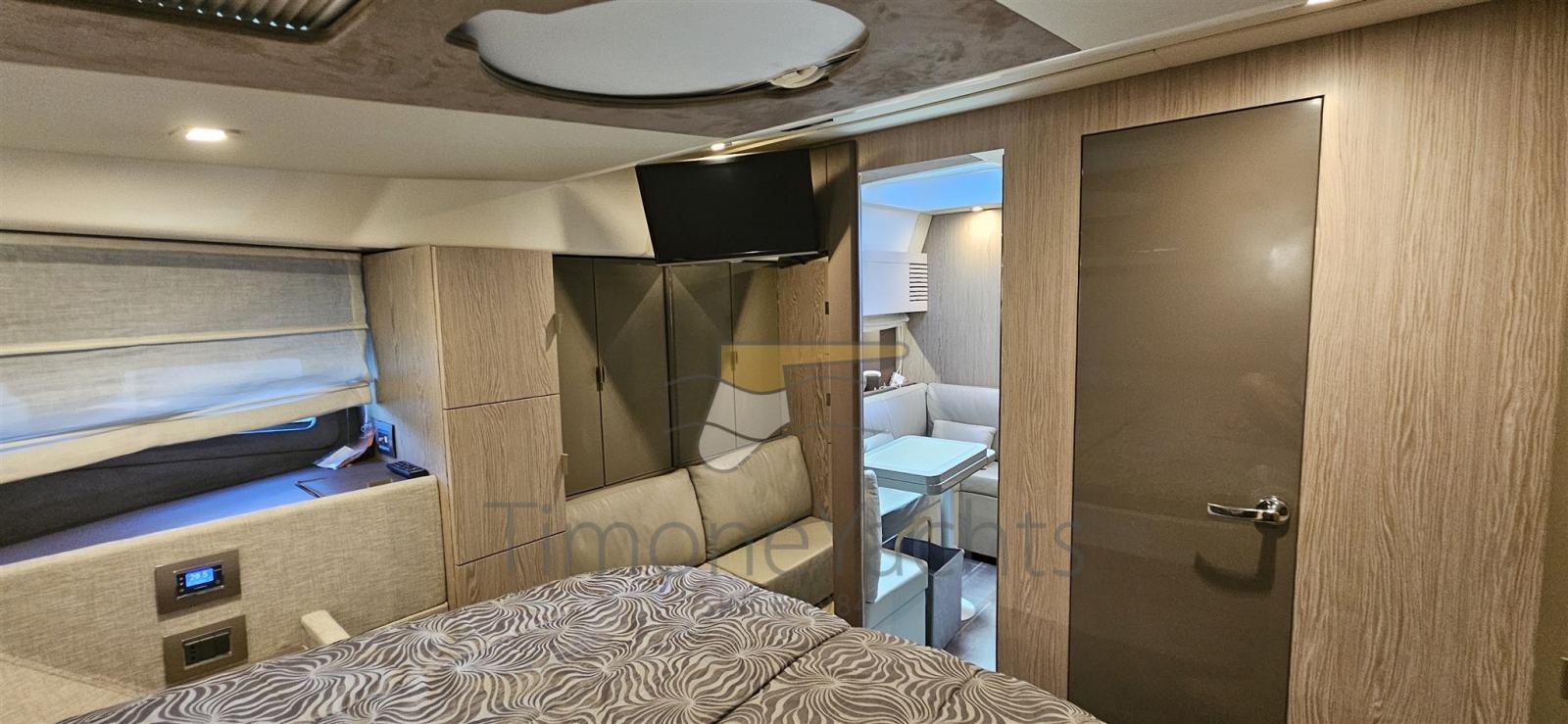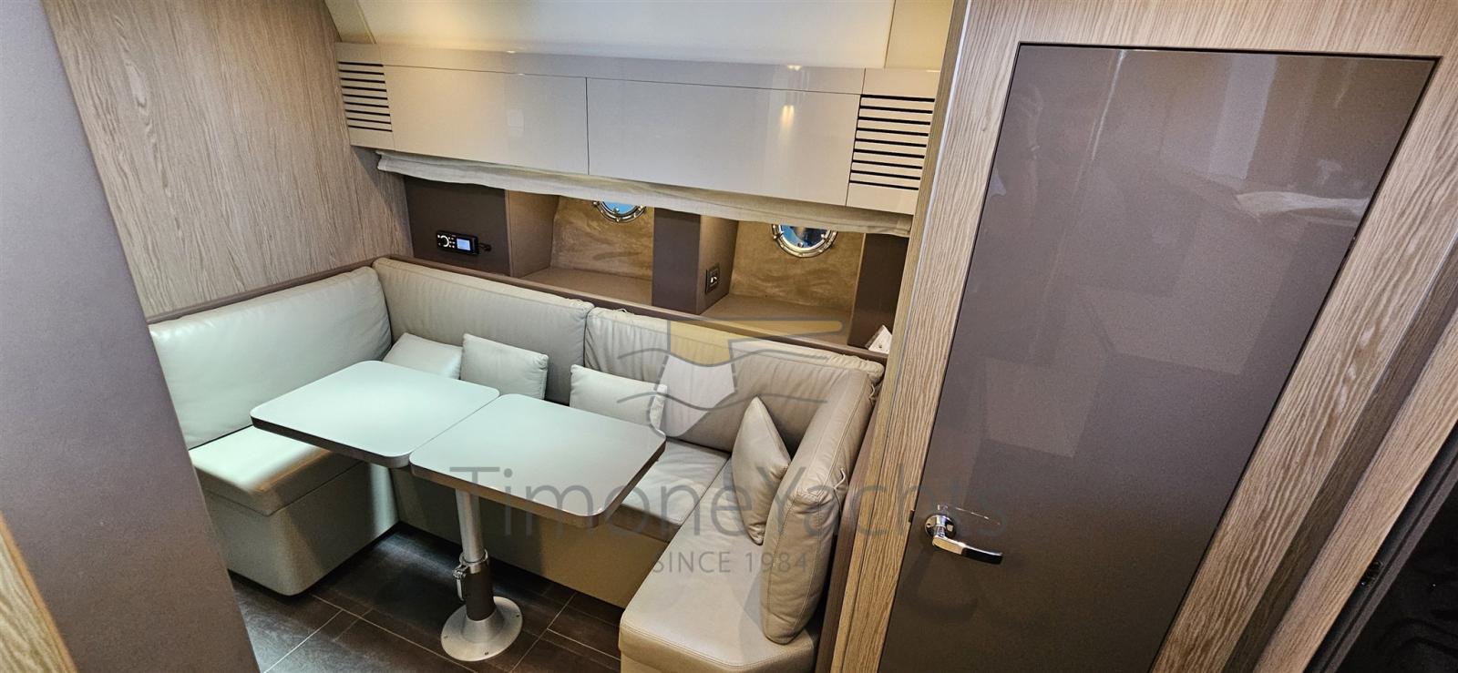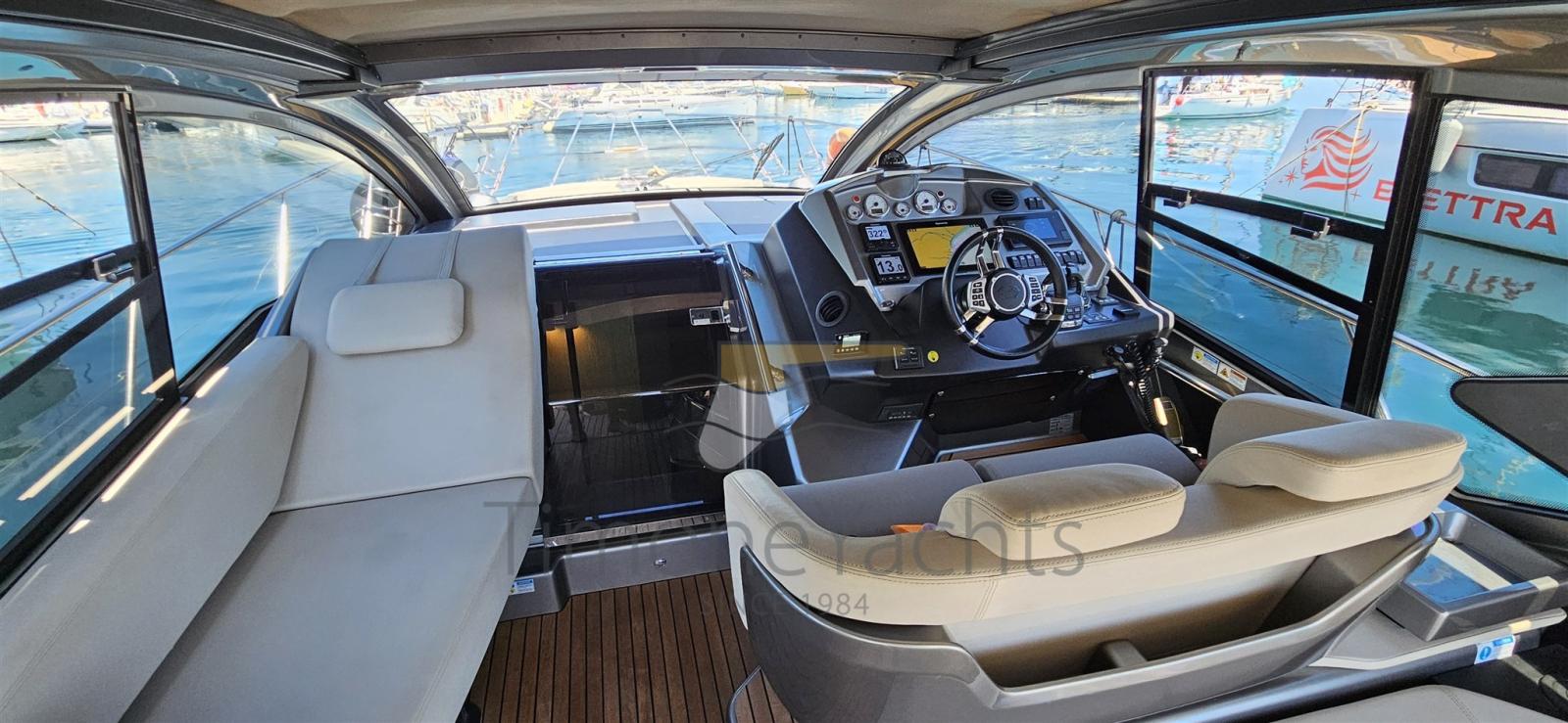Beautiful Cranchi M44, FULL optional specimen including a powerful tropicalized air conditioning system inside and in the external dinette, inverter, hull painting with Cosmo gray color and black hard top, increased service battery system, Fusion stereo system with 3 control zones, interior upgrade with Silvertex finish, leather interior sofas, internal wooden flooring, side blinds, aft windshield and sundeck, full cockpit coverage.