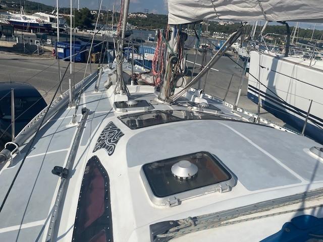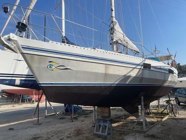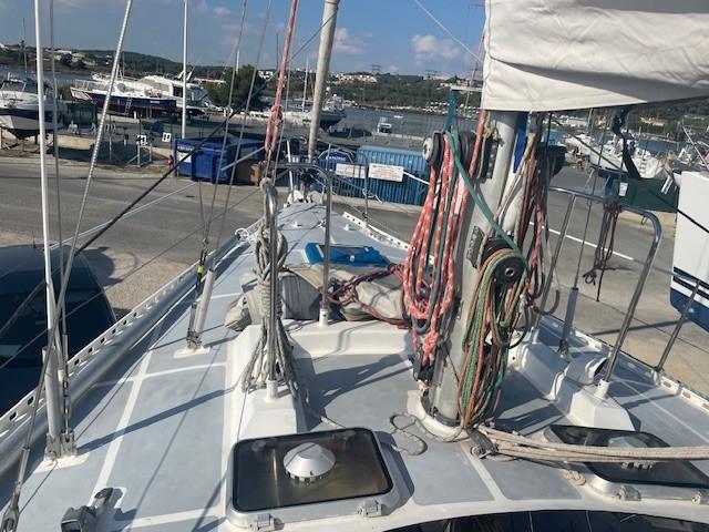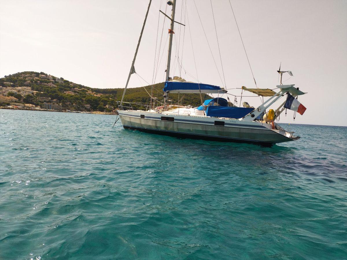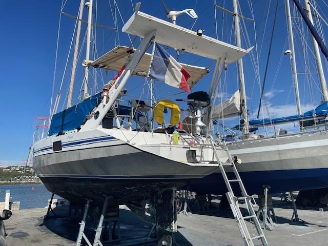 OVNI 41, a full-keel aluminum sailboat, is a solid construction by the French shipyard ALUBAT designed by P.BRIAND, in a 3-cabin version. This reliable and safe sailboat is very pleasant to helm, with its quality equipment, aesthetics, and fittings making it the ideal boat for a round-the-world trip (TDM). Perfectly maintained and monitored by its owners, it is the reference for a cruising yacht. To visit at PORT MARITIMA – MARTIGUES.