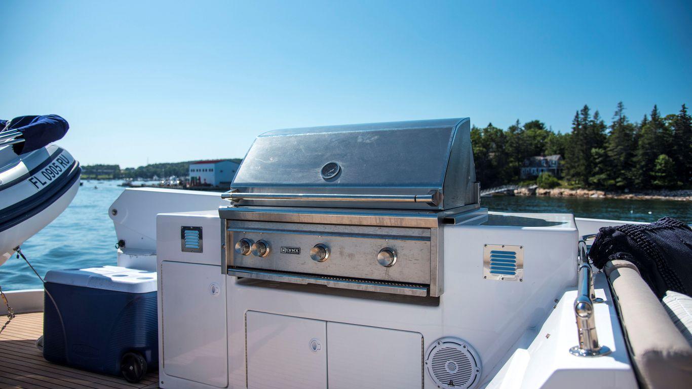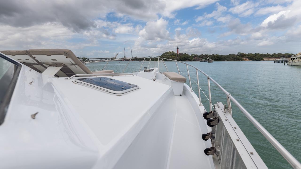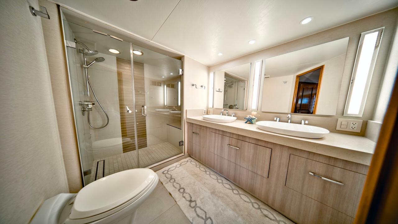 - Aft control station to port w/ gears, throttles & hydraulic bow thruster Hot & cold fresh water shower