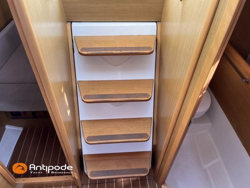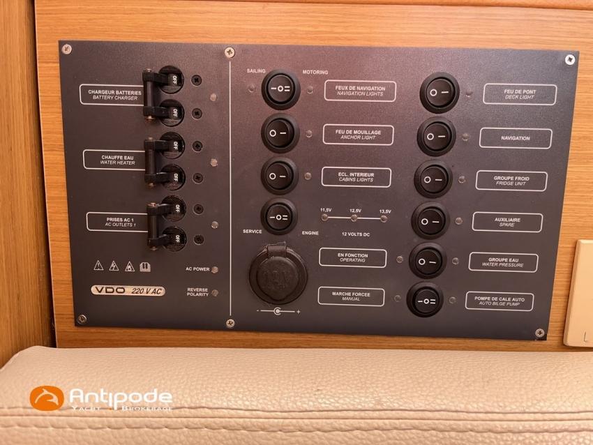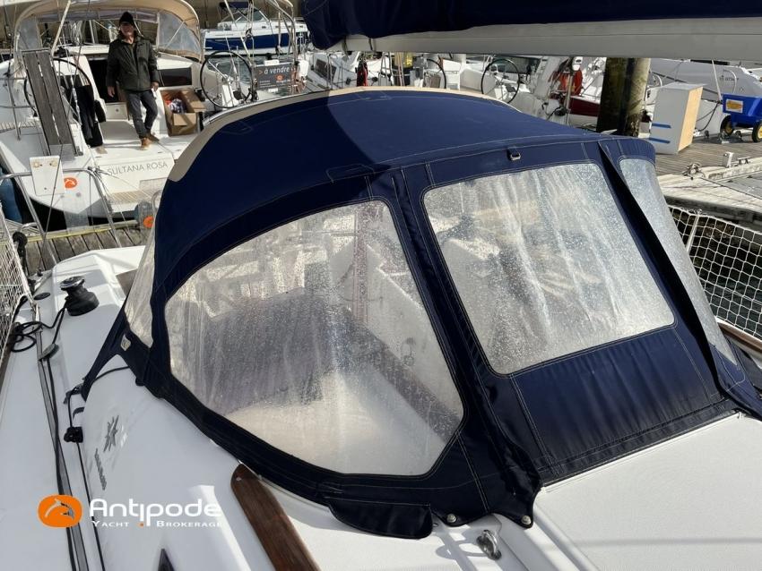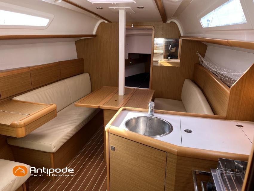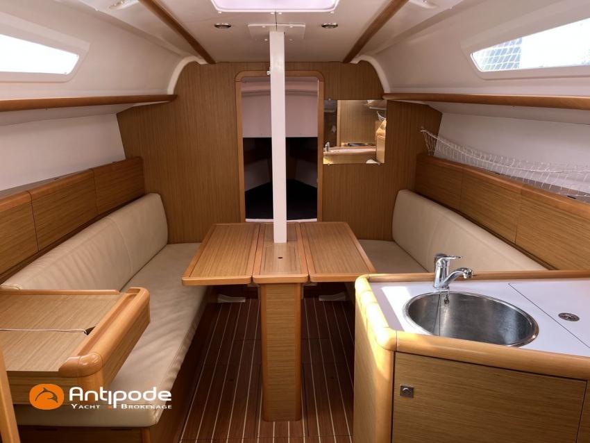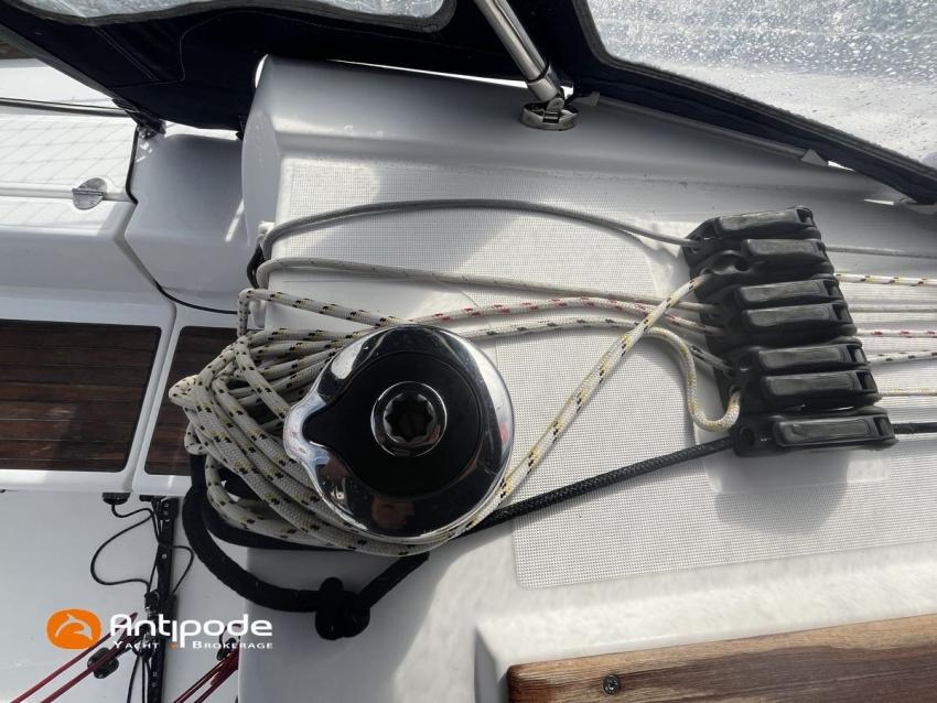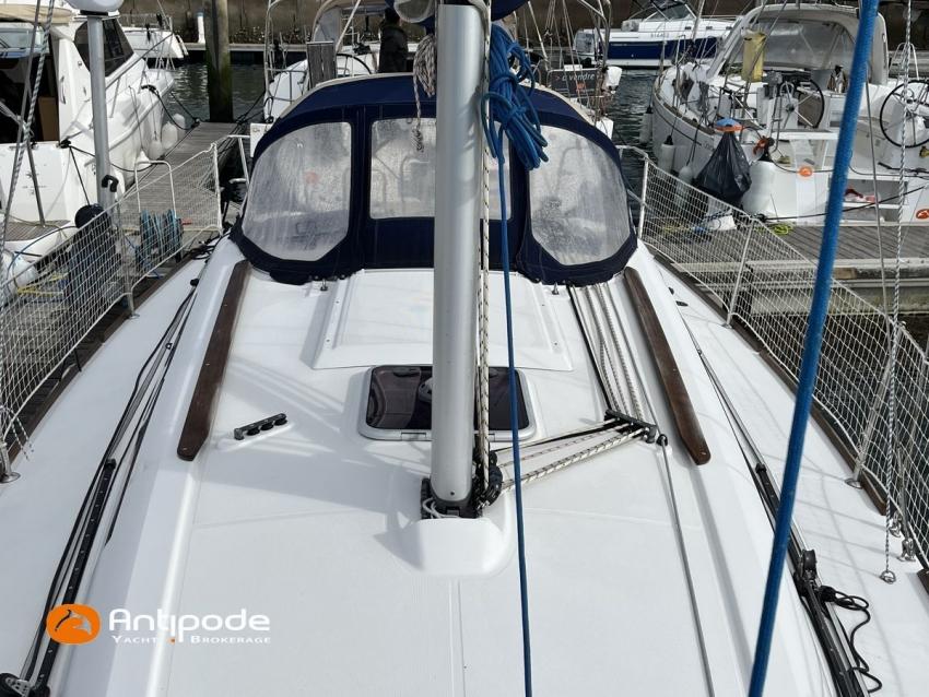 SUN ODYSSEY 33 i Performance, 2011, never chartered,YANMAR 3YM20, 21 hp Interior layout version 1 forward cabin, 1 aft cabin, 1 heads (toilets + shower), Cockpit mounted main sheet traveller, Teak cockpit seats, Cockpit table, Leather covered stainless steel wheel steering, Cockpit sprayhood, Electric windlass, PERFORMANCE rig version, Stainless steel cable standing rigging - 2020, Genoa roller furling with above deck drum - Facnor 2020, Asymmetric spinnaker, Adjustable backstay, In board autopilot - B & G AUTOPILOT Core Pack 2025, Navigation system ST 70 Raymarine, GPS and chartplotter (cockpit) - B & G ZEUS 9 2025, VHF at chart table, Fridge unit 12 V (top opening door), Water heater 220 V and engine heat exchanger, Hot and cold pressurized water, 220 V shore power + battery charger, Service batteries - X 2, Interior 220 sockets, Holding tank, Liferaft, Dinghy - Ivovanex LC 270 2023, Outboard engine - Suzuki 2.5, Located Brittany. For more information or to make an appointment for a visit, contact : Jérôme Le Joubioux +33 6 07 45 71 73 - jerome@antipode-yachts.com