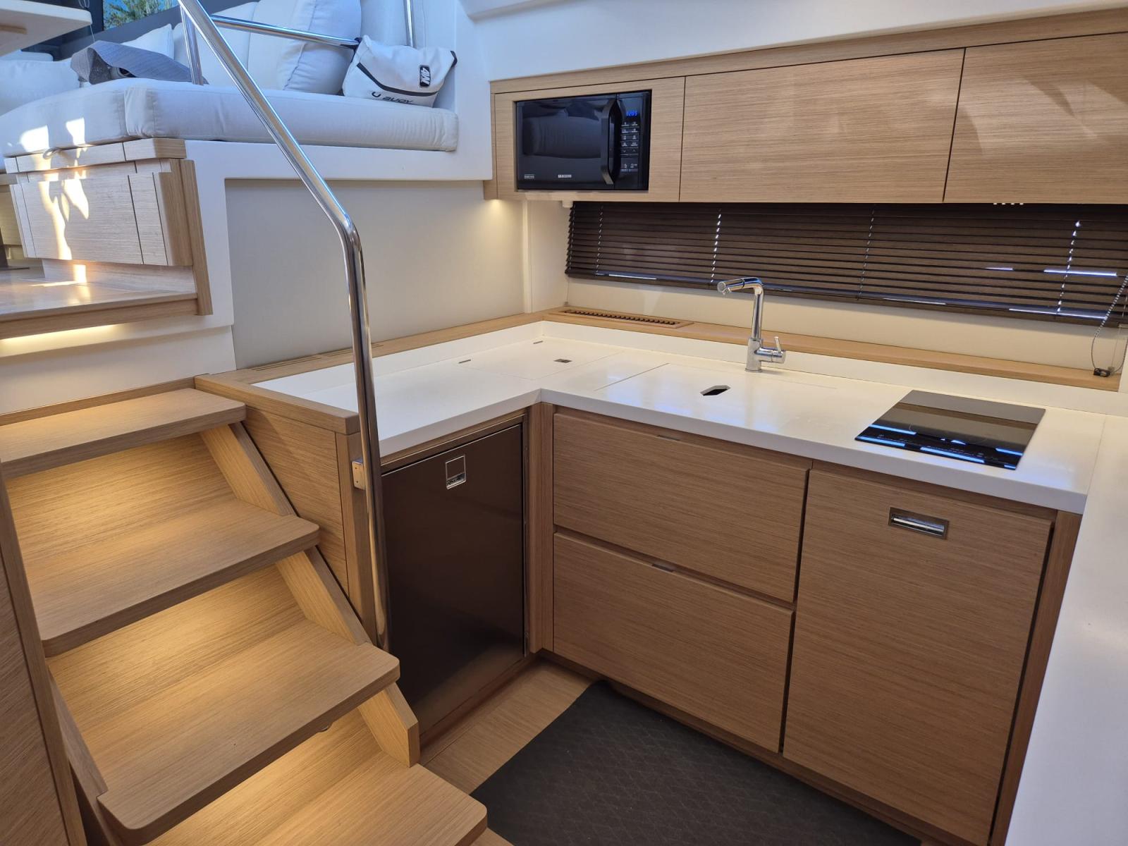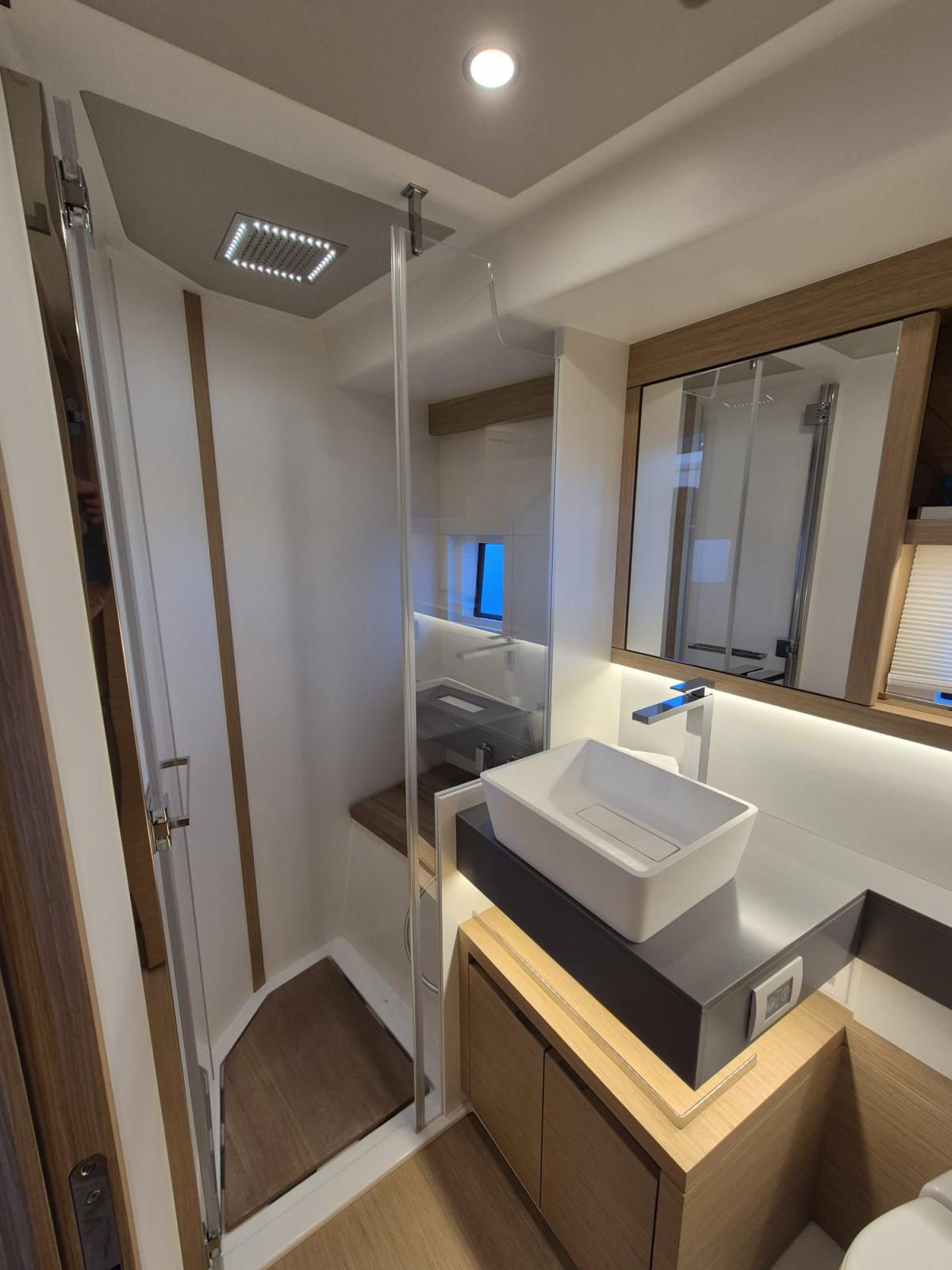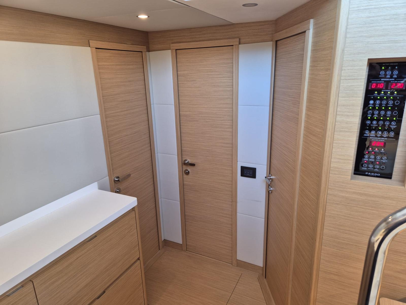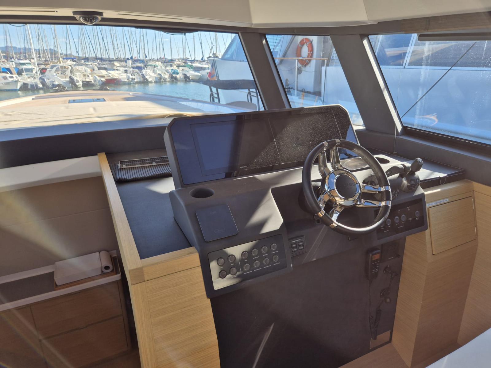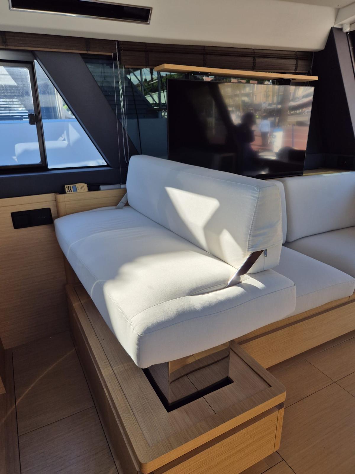 On board, you will immediately feel the difference: a sleek design, noble materials and ergonomics designed for a peaceful experience at sea. Thanks to the reversible air conditioning, 12KW Kholer generator, joystick and gyroscopic stabiliser, every trip becomes a cocoon of well-being, even in rough seas.