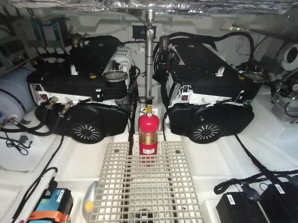 Engine Alarm, Bilge Alarm, Water pressure pump, Auto-Trim ((option) Volvo Interceptor System with Auto trim, List and Coordinated Turn), Batteries ((upgrade) 2x160Ah AGM or Li-lon 800 Ah (10Kw/h) or Li-Ion 1600 Ah (18Kw/h)), Draining System, Teak Side Decks, Special Colour ((option)), Deck Shower, Bow Thruster ((option)), Fire Extinguishing System (fire buoy), Flaps Indicators, Courtesy Lights ((option) Indirect light package: multicolour on handrails on side deck and sunbed and white colour on dashboard), Underwater lights ((option) multicolor), Gangway ((option) hydraulic), Platform ((option) hydraulic tender lift), 2 Automatic Bilge Pump, Entry door (sliding), Teak Cockpit, Shorepower connector, Water harbor connector system ((option)), Electric Windlass, swimming ladder, Stabilizers ((option) Quick gyro (12V or 230V)), 2 cockpit table ((option) modular deck layout), 2 guard rails with gates, Horn, T-Top (Full beam T-Top with windshield frame and wiper cover).