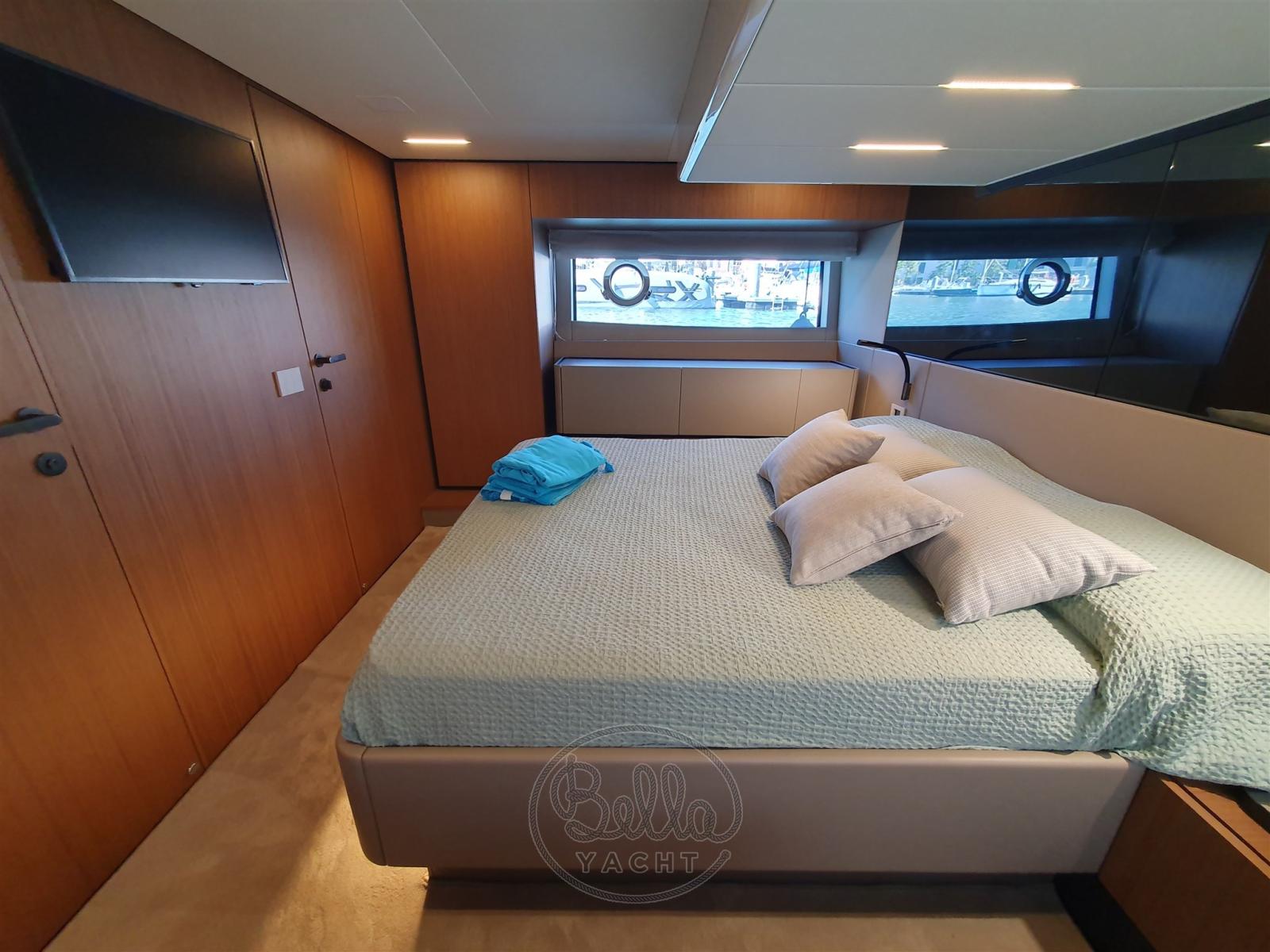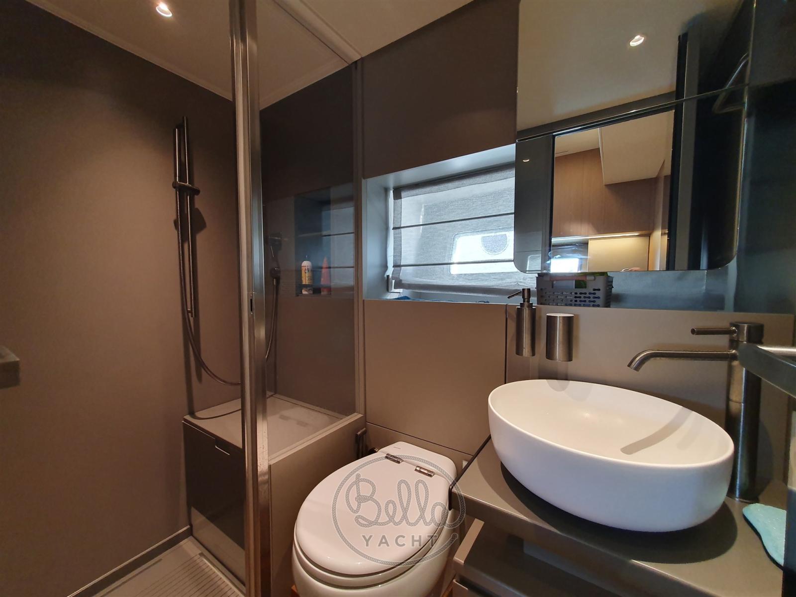 Engine Alarm, Bilge Alarm, Anchor (30kg Bruce type with bow roller and 75m galvanized chain (10mm)), Auto Dynamic Trim Interceptor (Volvo Penta), Water pressure pump, 2 Folding cleats (mid ship and 4 fixed cleats), Draining System, Teak Side Decks, Special Colour, Deck Shower, 4 Headlights fixed on the stem (2 aft & 2 fwd), Directional Spotlight, Fire Extinguishing System, Flaps Indicators, Courtesy Lights, Underwater lights, Gangway, Platform, 4 Automatic Bilge Pump, 2 Manual Bilge Pump, Entry door, Teak Cockpit, Shorepower connector (63A with 25m cable), Water harbor connector system, Electric Windlass (1700W), swimming ladder, Stabilizers (Seakeeper), cockpit table, Horn, Teak Deckhouse, 2 Stern Winches (one STD and one optional).