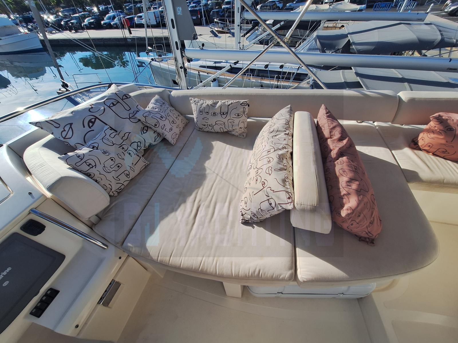 equipped flybridge, new windlass, sun awning, deck shower, sunbathing cushions, hydraulic gangway.