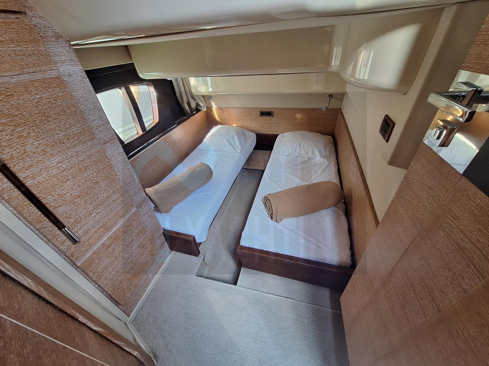 Powered by two Caterpillar C9 engines, the Azimut 47 combines reliability and power, ensuring smooth and quiet navigation. The bow and stern thrusters facilitate maneuvering in even the most confined ports.