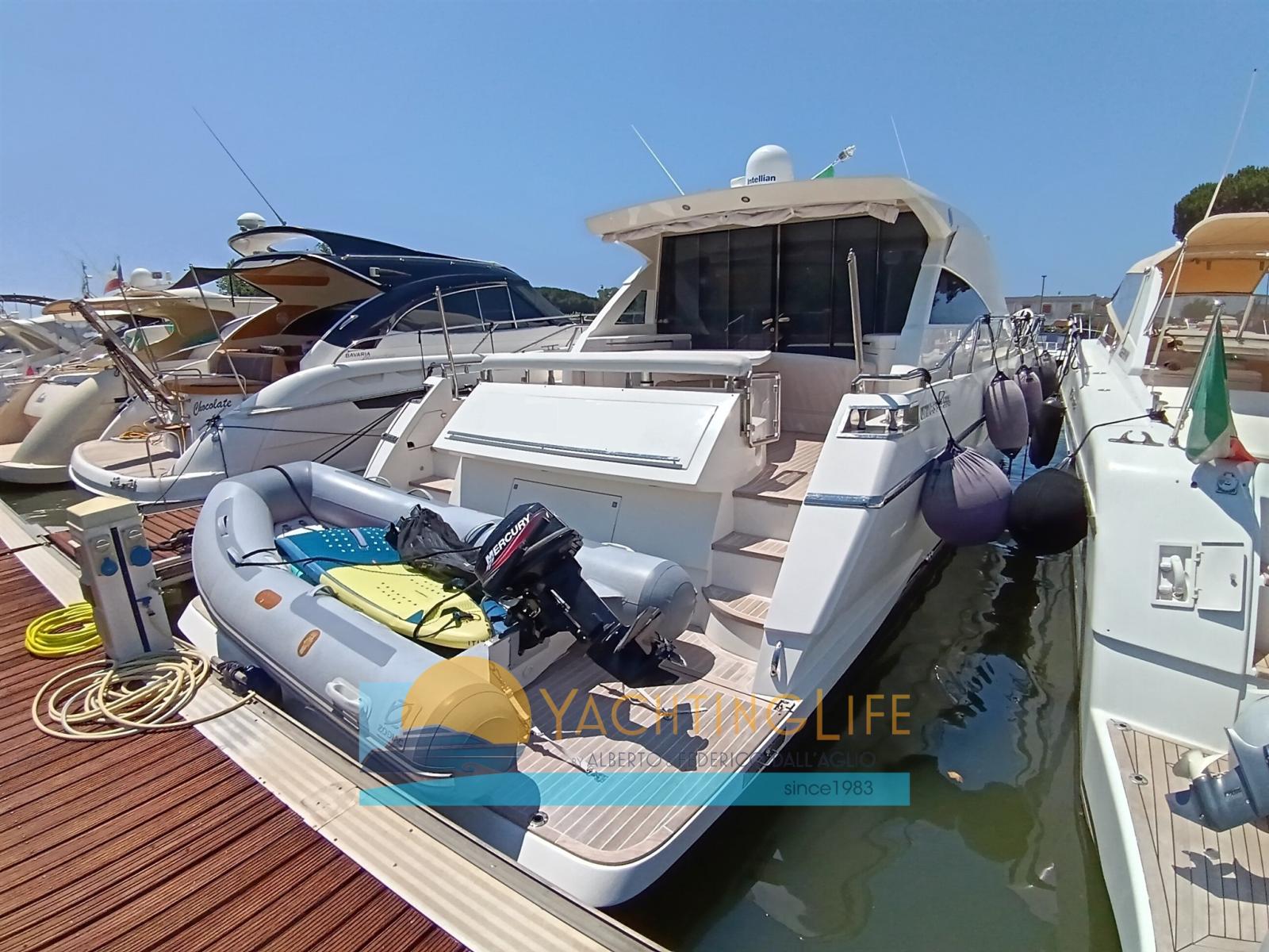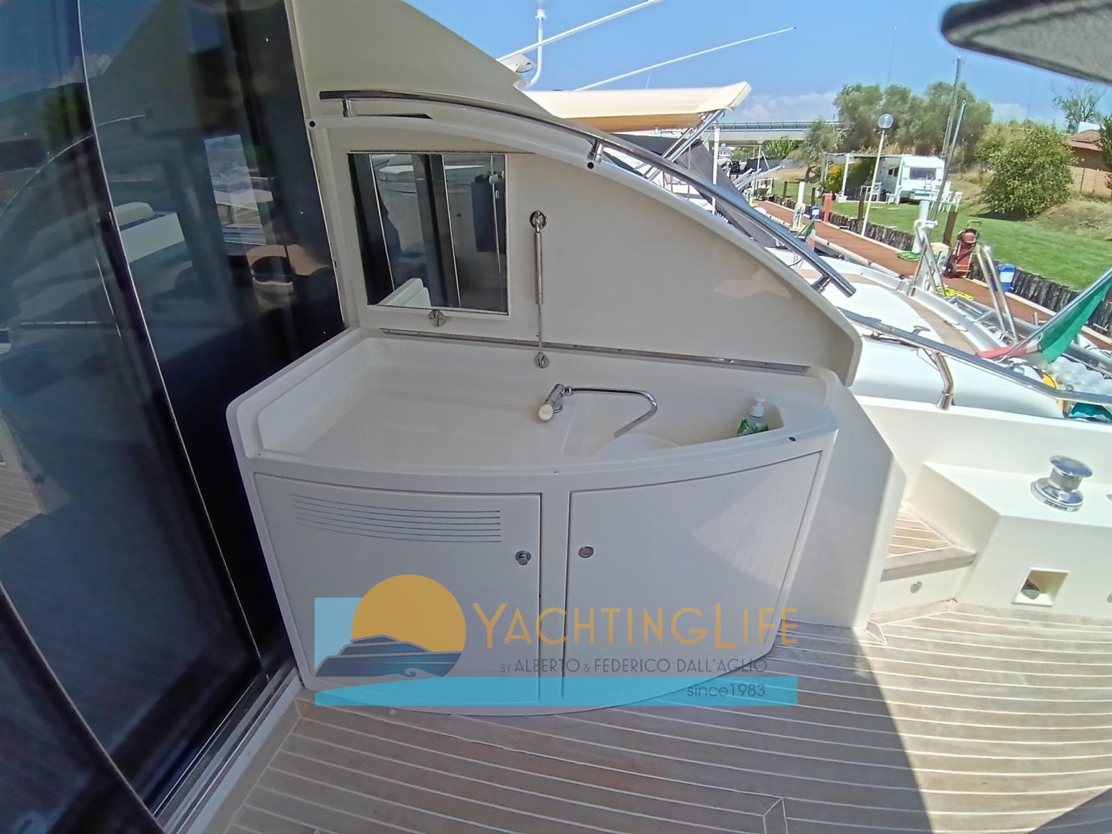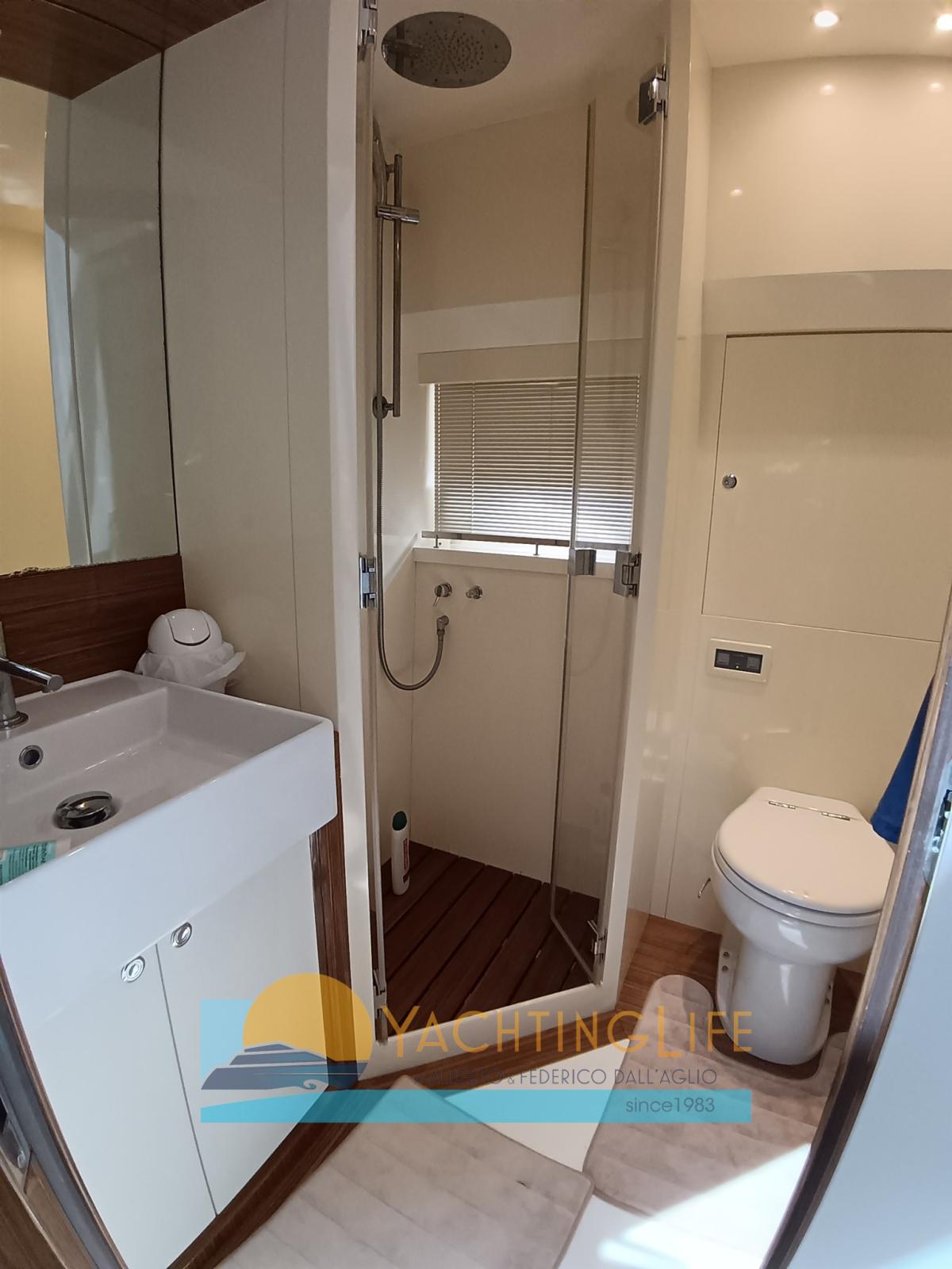 Engine Alarm, Bilge Alarm, Anchor (con catena in acciaio), Water pressure pump, Deck Shower, Directional Spotlight, 2 Hydraulic Flaps, Hard top, Fire Extinguishing System, Flaps Indicators, Washbasin in the cockpit, Courtesy Lights, Underwater lights, Gangway (manuale in carbonio), Platform (idraulica), Automatic Bilge Pump, Entry door, Teak Cockpit, Shorepower connector, Electric Windlass, swimming ladder, Saddles for tender, cockpit table (elettrico), Tender (e motore 15hp), Horn, Stern Winches.
