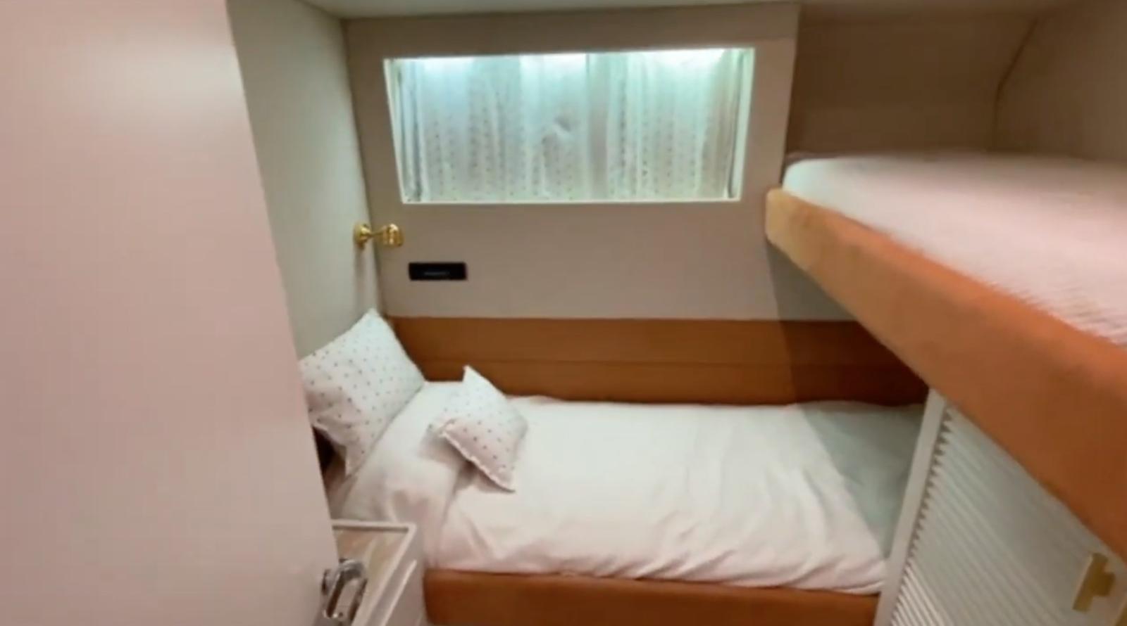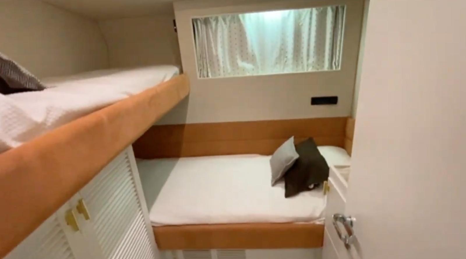 Master cabin with double bed and bathroom - guest cabin with two cross beds - guest cabin with two cross beds - guest bathroom.