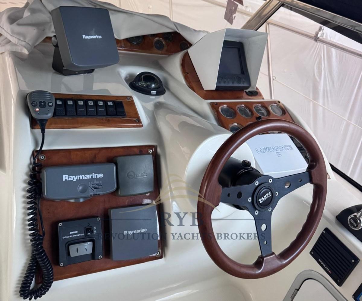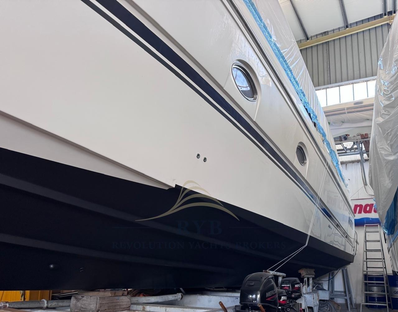 Fume/Gas Detector, Bilge Alarm, Electric Engine Compartment Opening, Water pressure pump, Deck Shower, Hydraulic Flaps, Flaps Indicators, Washbasin in the cockpit, Courtesy Lights, Gangway, Platform (TEAK), 3 Automatic Bilge Pump, Shorepower connector, Rollbar, Electric Windlass, swimming ladder, cockpit table.